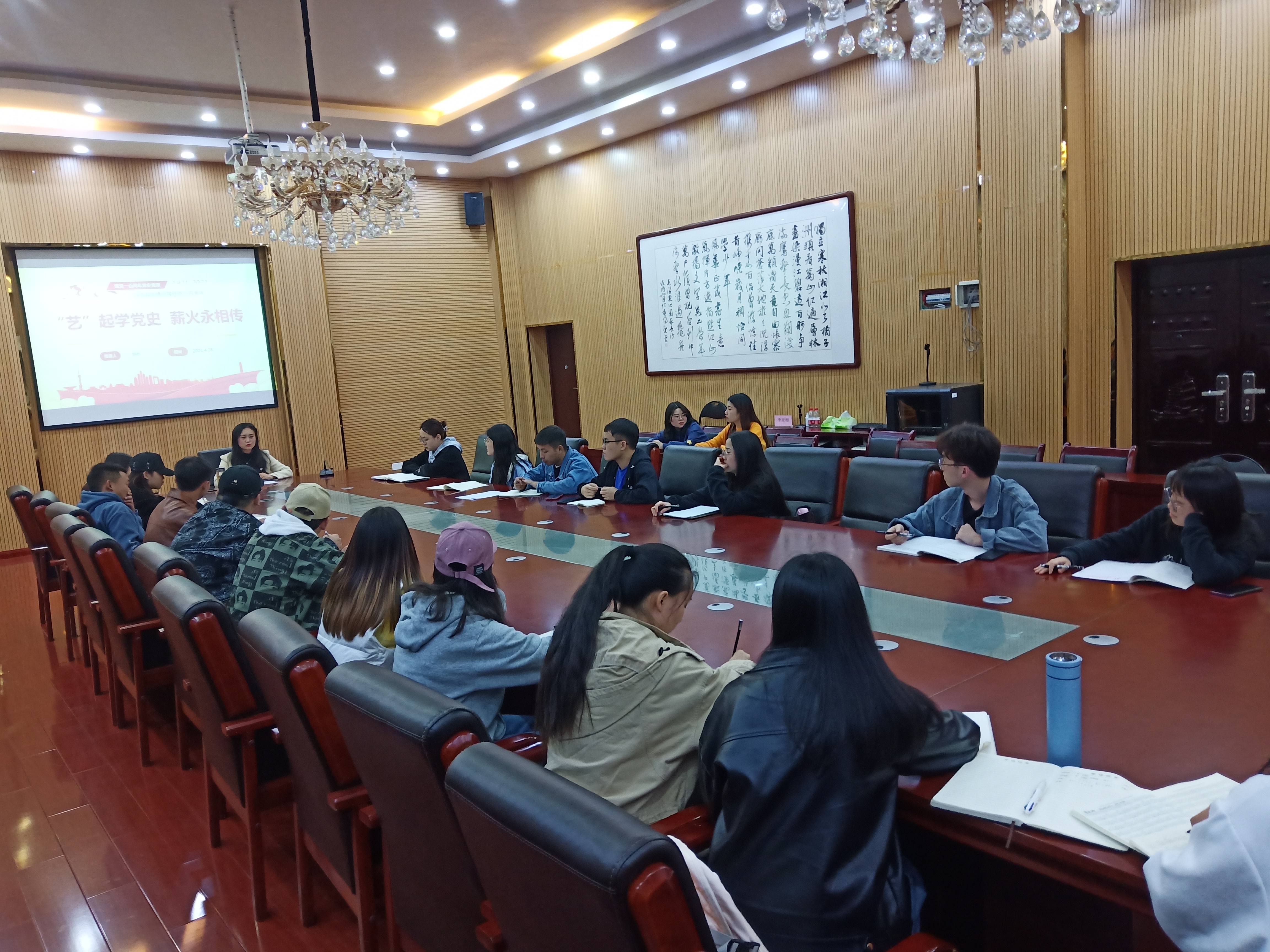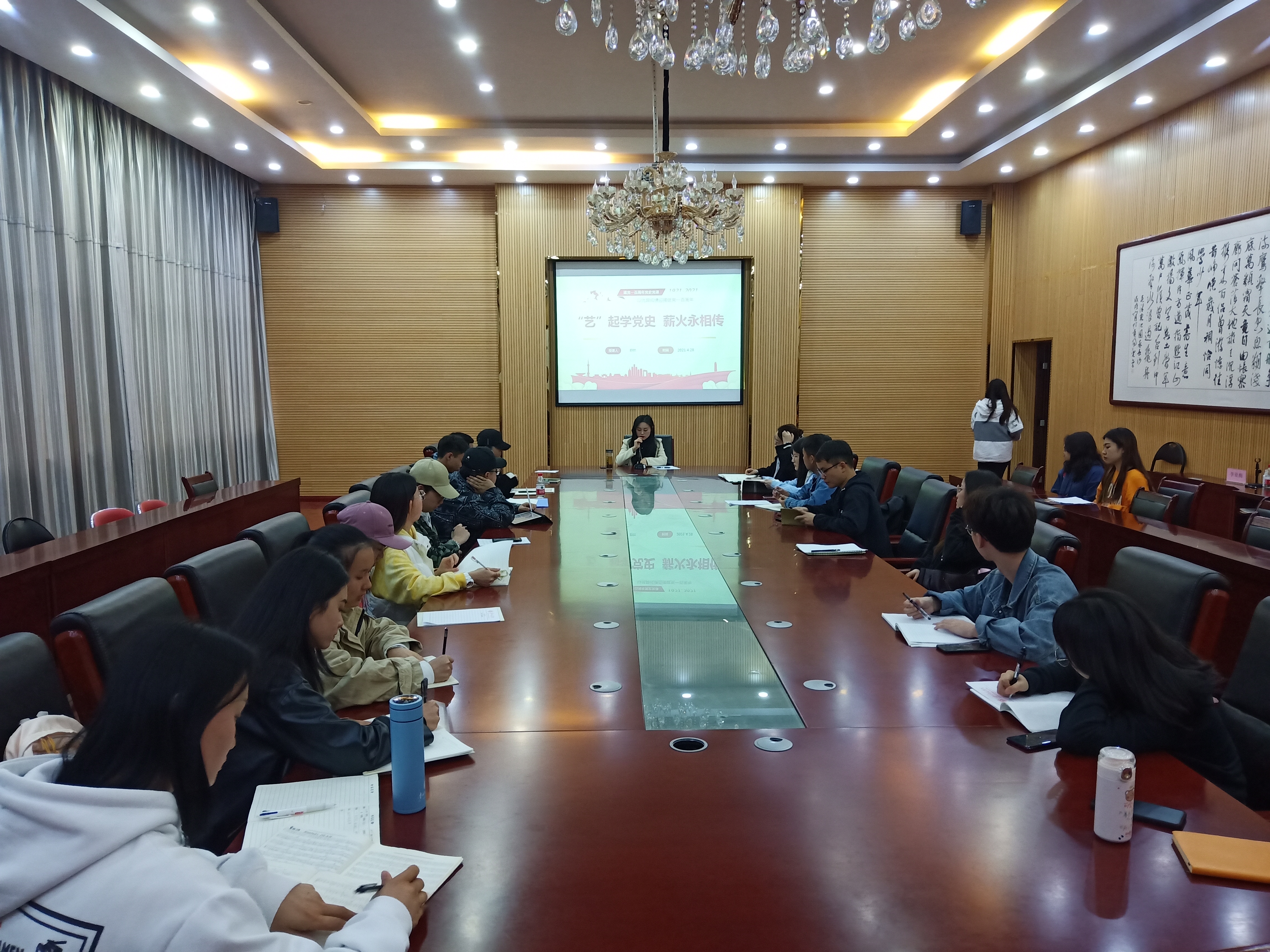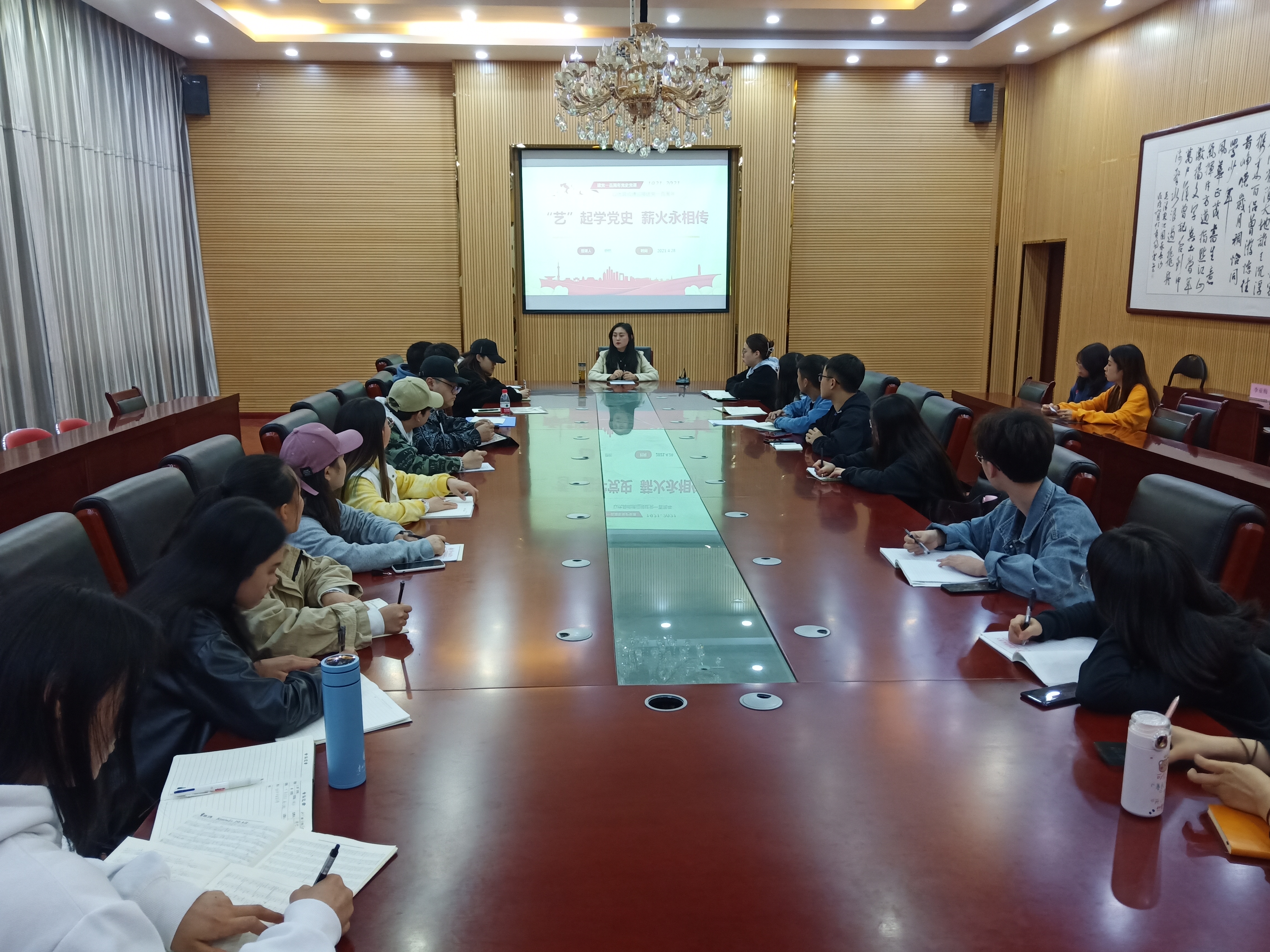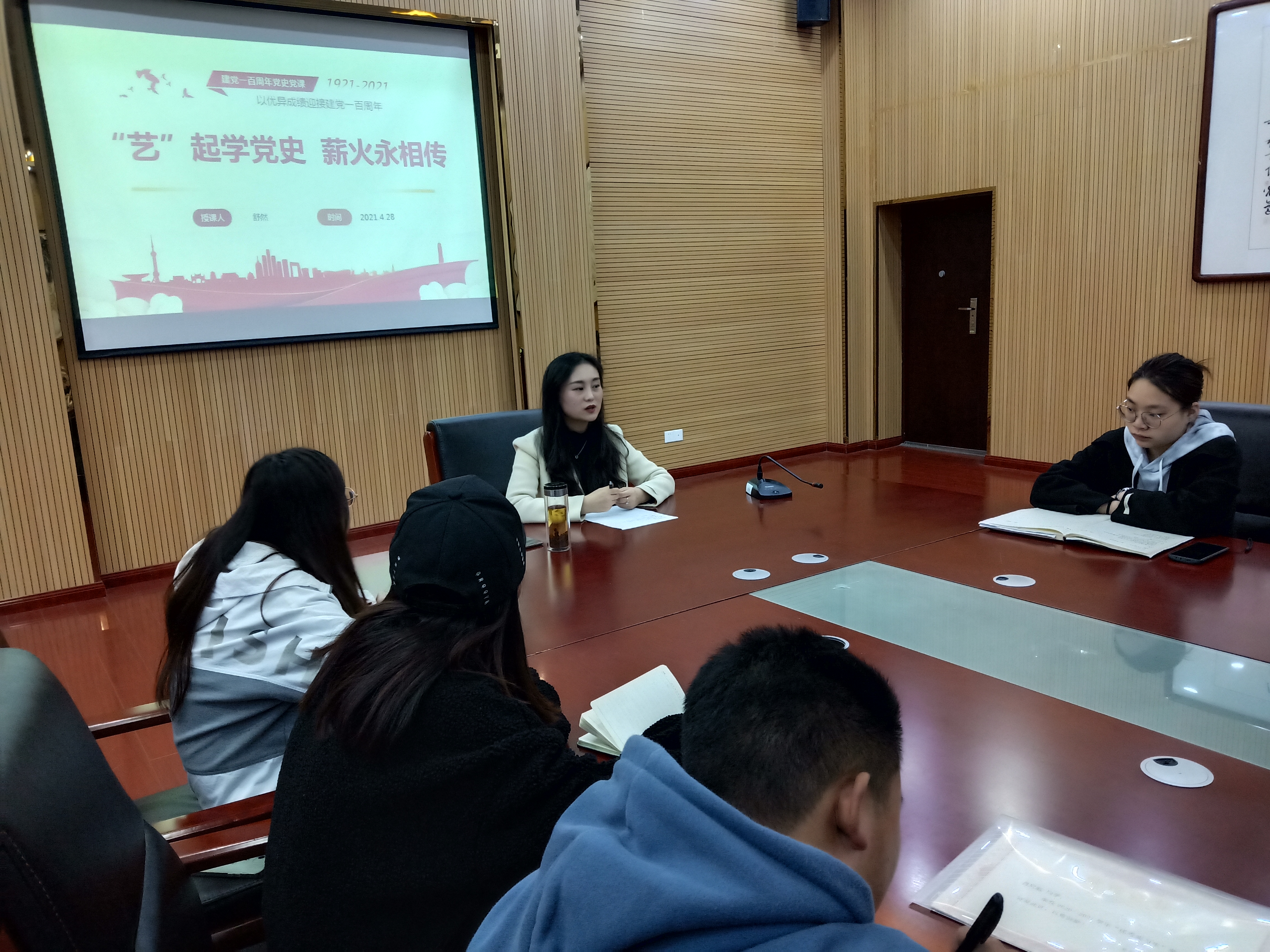 为认真落实党史学习活动,进一步提高党员的政治理论素养。4月28日下午,2026年世界杯官网音乐系员工党支部在六楼会议室开展以“‘艺’起说党史,薪火永相传”为主题的党史宣讲活动,音乐系员工党支部书记舒然担任宣讲人。