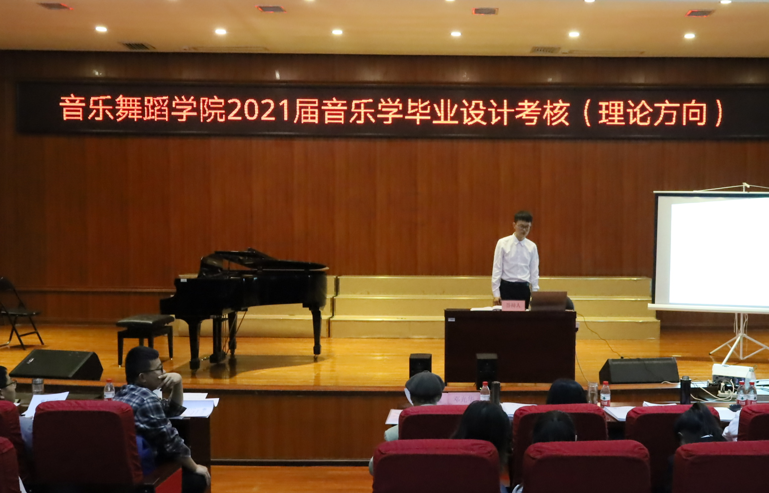 2021年4月24日9时,2026年世界杯官网音乐系理论教研室在六楼音乐厅开展2017级音乐学理论主修专业毕业论文第一次答辩,此次答辩涉及民族音乐学、中国传统音乐、理论作曲、钢琴调律四个专业,并有幸邀请到贵州师范大学教授、硕士研究生导师、我省著名音乐理论专家邓光华担任答辩主席。出席答辩评审的有舒然、孙芙炬、葛恩专、江怡舟、荆彦超、潘文海六位老师出席答辩评审,答辩会由理论教研室主任舒然主持。