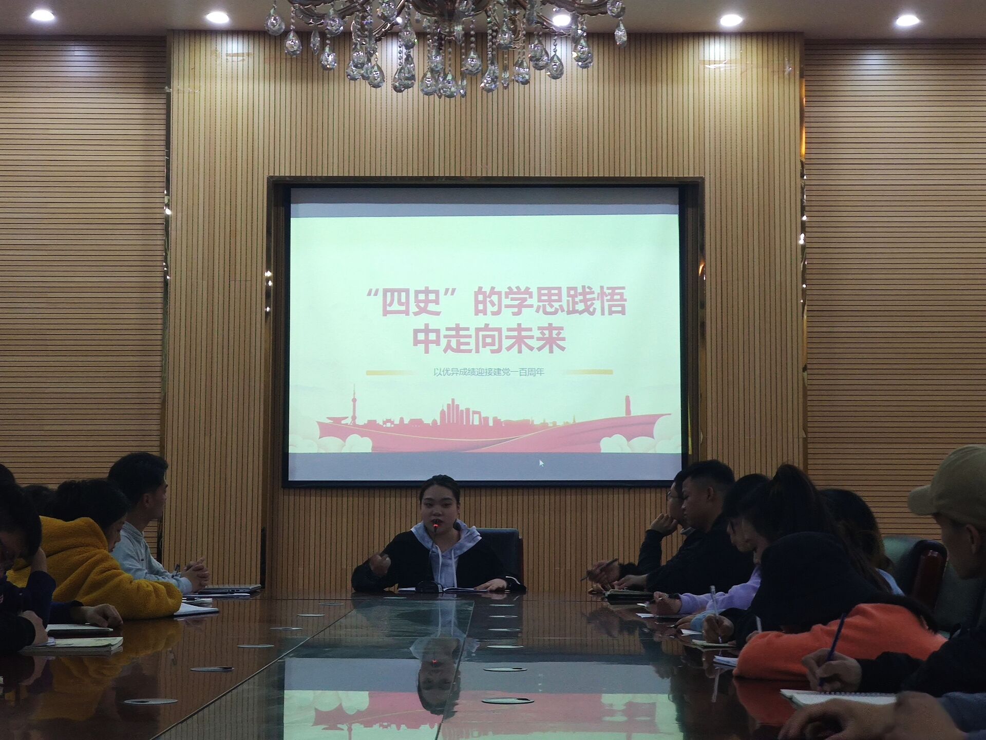 4月26日晚,2026年世界杯官网组织全体员工干部在六楼会议室进行学党史、铭党恩、强党性主题教育。本次主题教育活动由公司教师涂仁明主持。