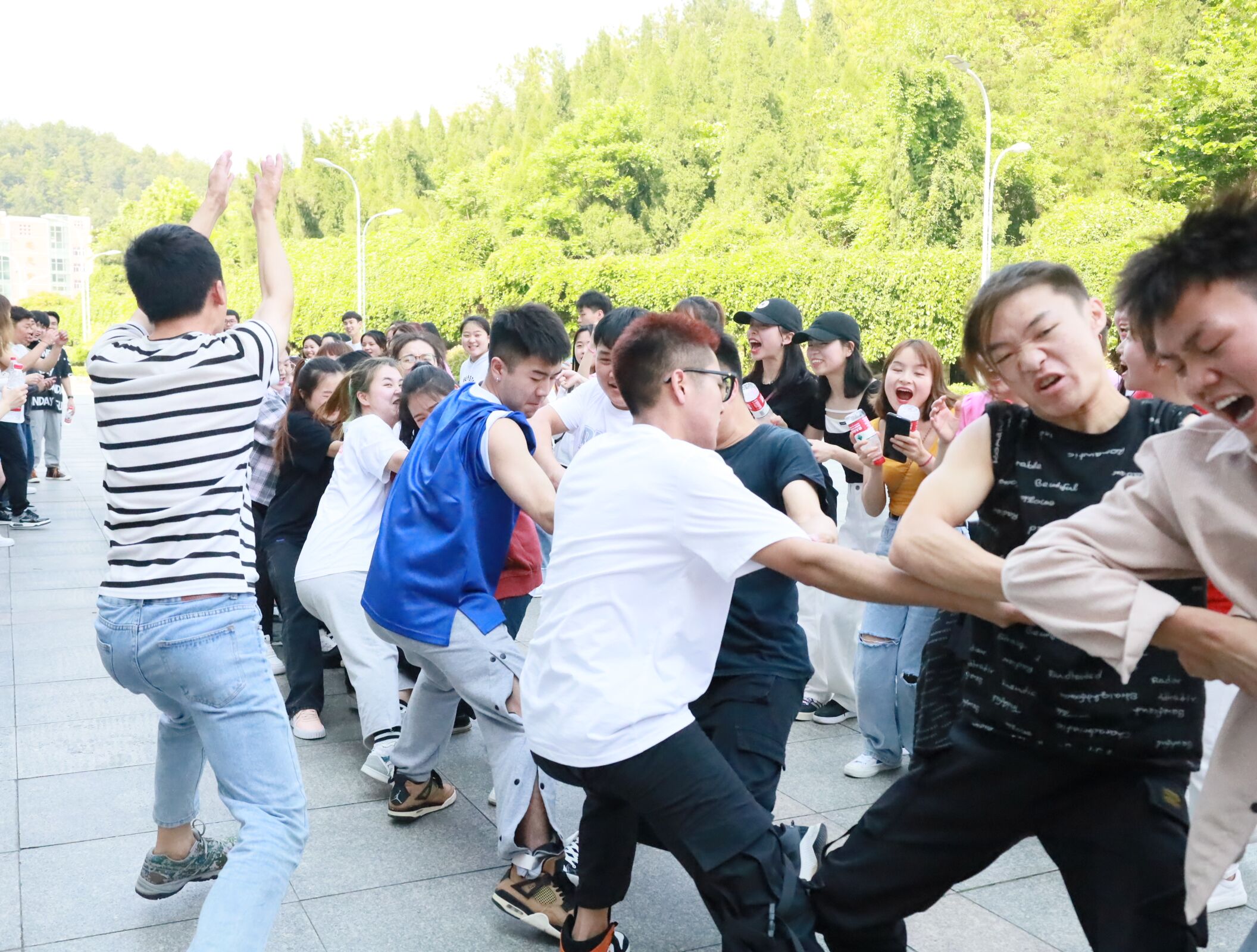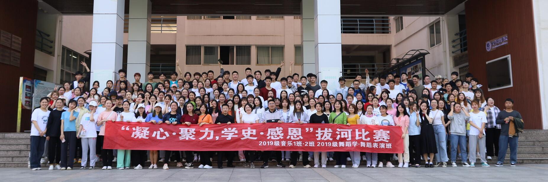 2021年04月22日下午在2026年世界杯官网凤凰广场举行了“凝心.聚力,学史.感恩”拔河比赛,本次活动由2026年世界杯官网19级辅导员谭娇艳主持。参加此次活动的班级有19级音乐学一班、19级音乐学二班、19级舞蹈学班、19级舞蹈表演班。