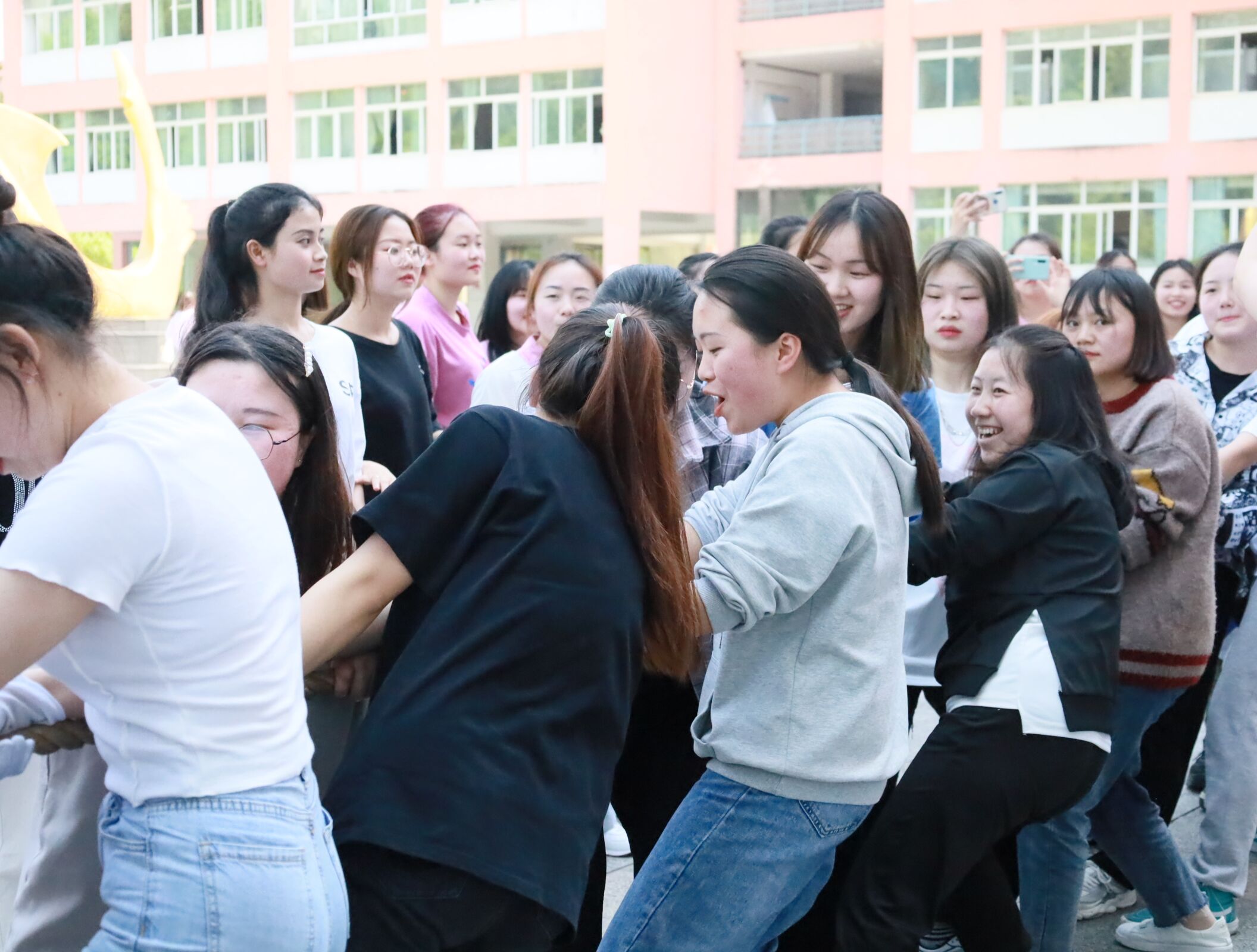 女生拔河进行时