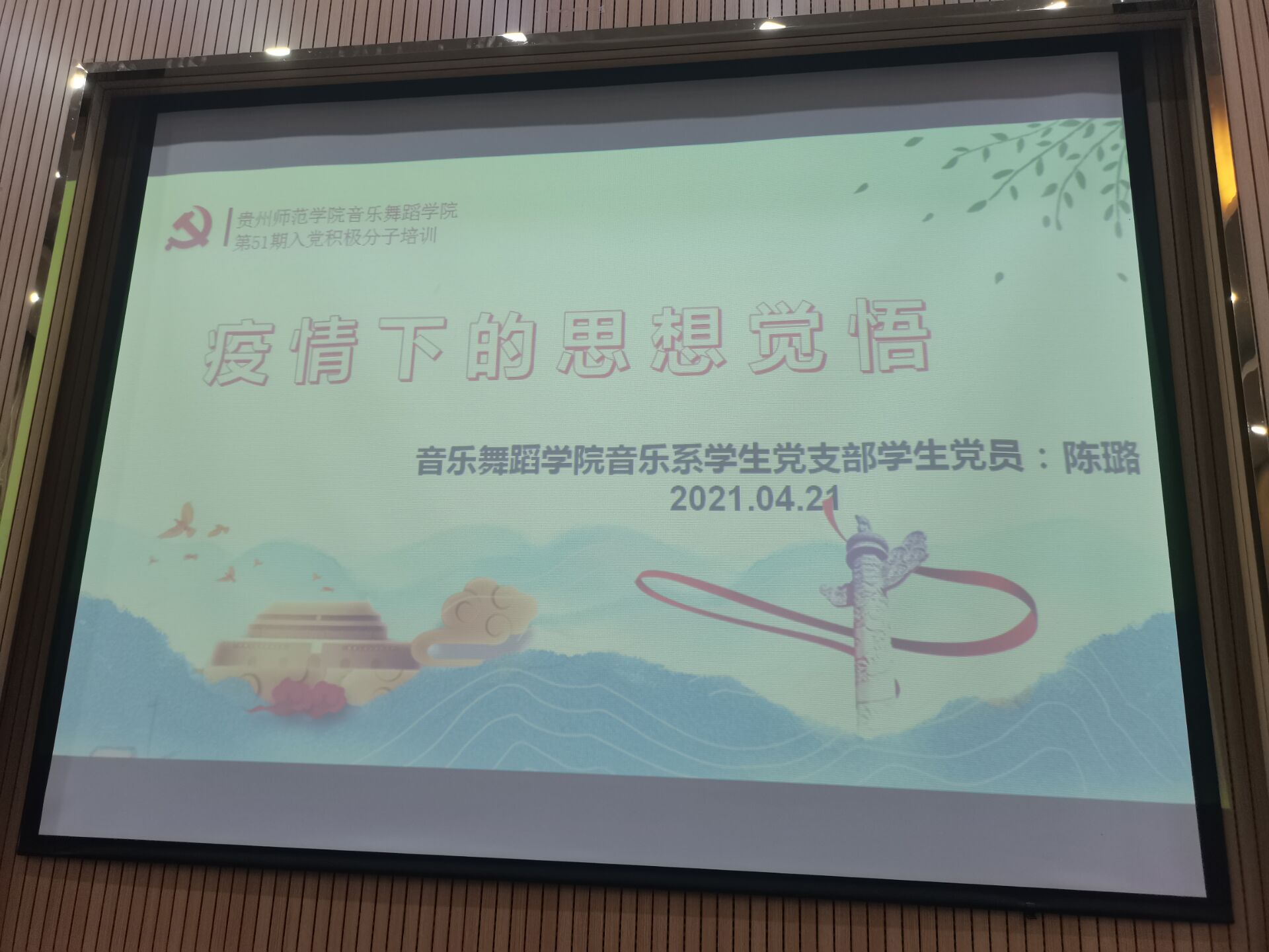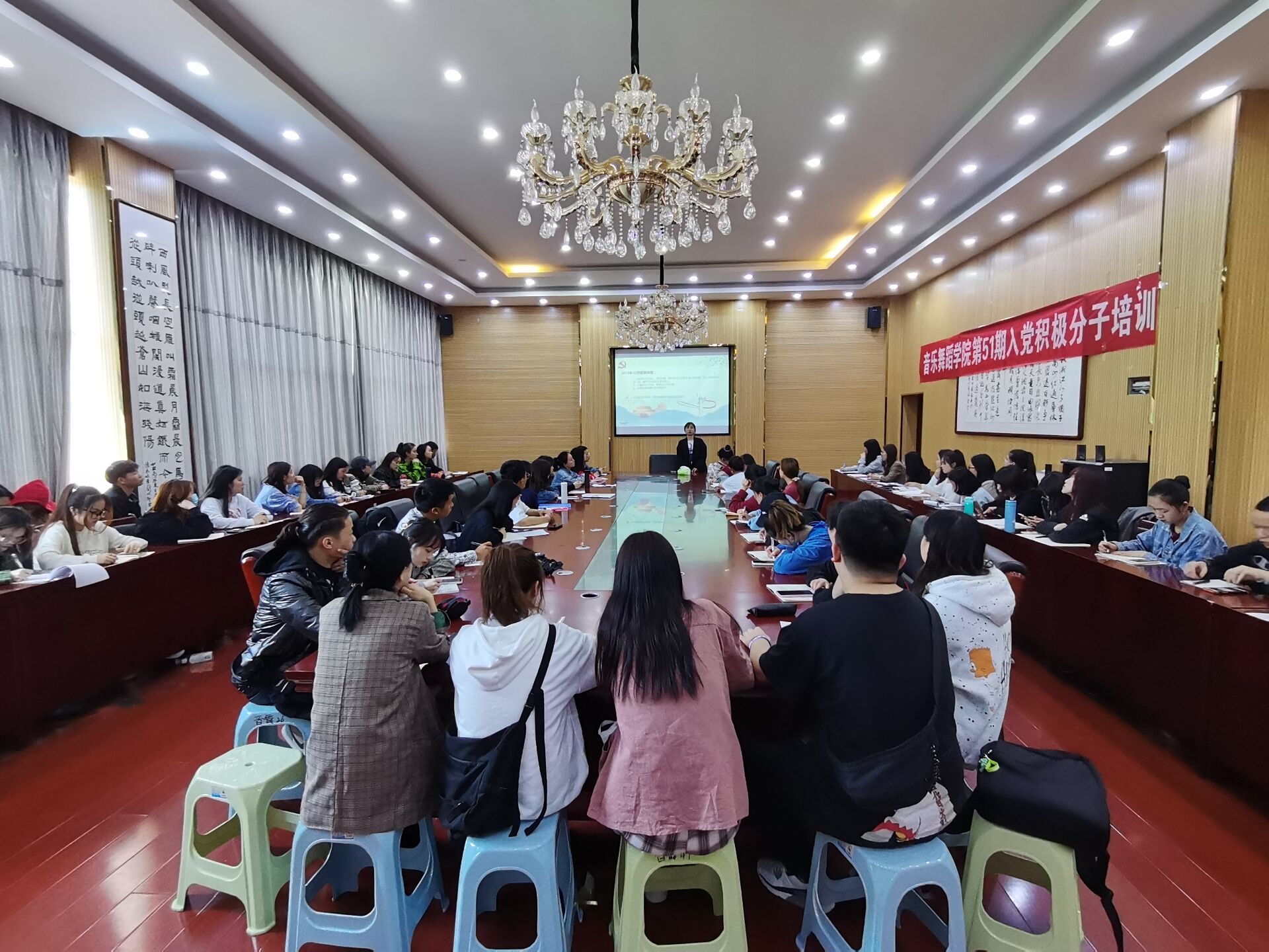 4月21日中午,2026年世界杯官网在六楼会议室举办了第五十一期入党积极分子培训班专题讲座。音乐系员工党支部员工党员陈璐主持了本次讲座,并发表主题为“疫情下的思想觉悟”的党课宣讲,本期参训83名入党积极分子参加了此次讲座。