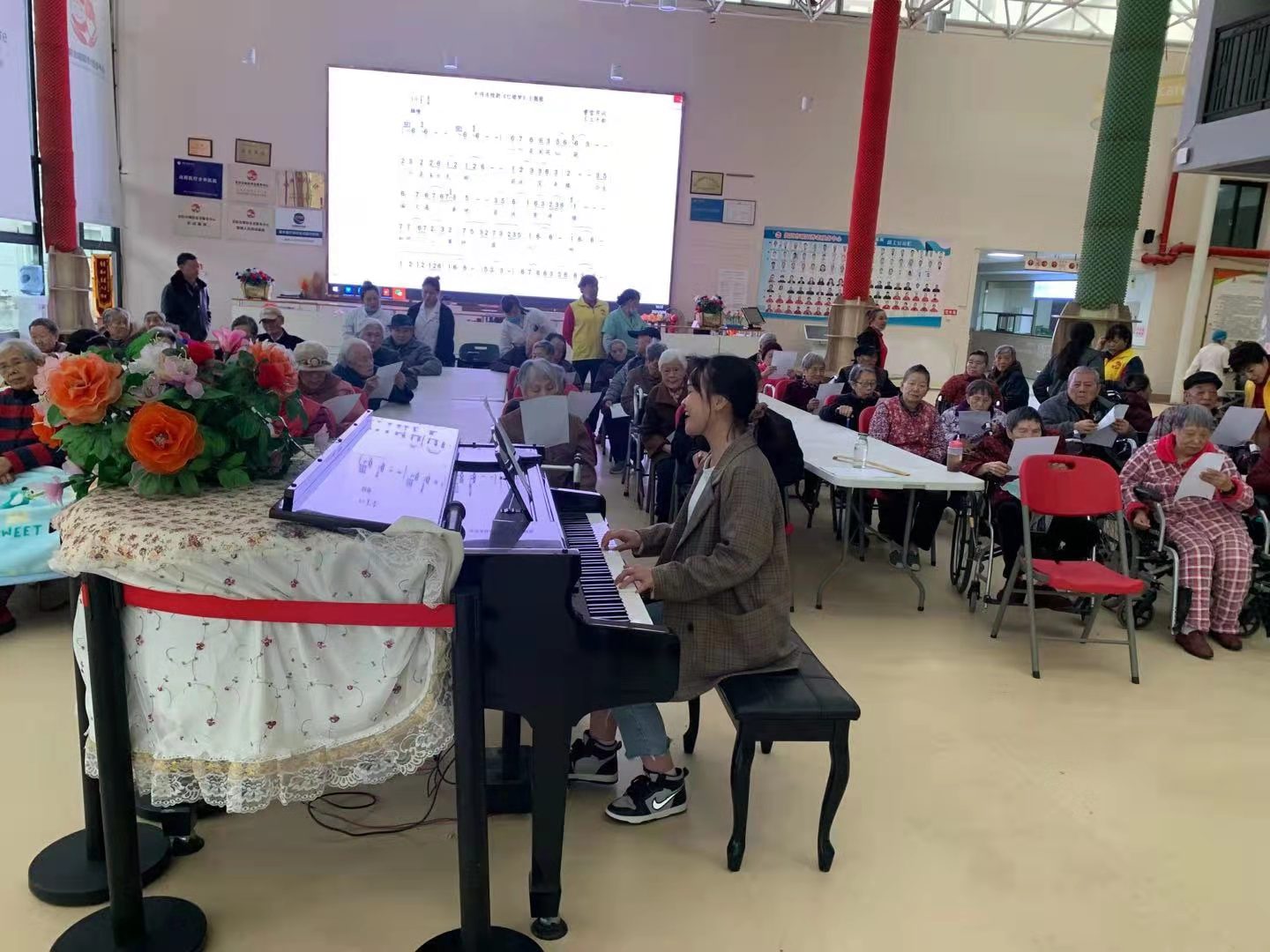 3月21日下午,历经半小时的车程,同学们来到了乌当区曜阳养老院,在负责人的安排下,我们参观了养老院,了解了养老院的具体情况与设施。临近活动开始时间,老人们也纷纷到达学习场地。此次教学活动的授课人为2020级音乐学一班团支书吴宇增,她的授课内容是民族声乐曲《枉凝眉》,老人们拿着歌词单跟着志愿者哼唱起来,眼睛不太好的爷爷便拿出了放大镜,看起来可爱极了,原本沉寂的气氛活跃了起来,欢声笑语充满了整个敬老院。每一位老人都感到无比满足。紧接着,吴宇增又和老人们合作演奏了一首《我和我的祖国》,由78岁的奶奶现场伴奏,场面极度温馨,也有的拉着老人的手询问生活情况,畅谈1心扉。老人们说有了这些好孩子的陪伴,感到不孤单。临走前,老人们为志愿者们齐唱了一首《难忘今宵》,希望我们能常常去看望他们,在与老人们的相处之中,我们深深感受到了老人们对于亲情以及来自社会关心和关注的渴望。