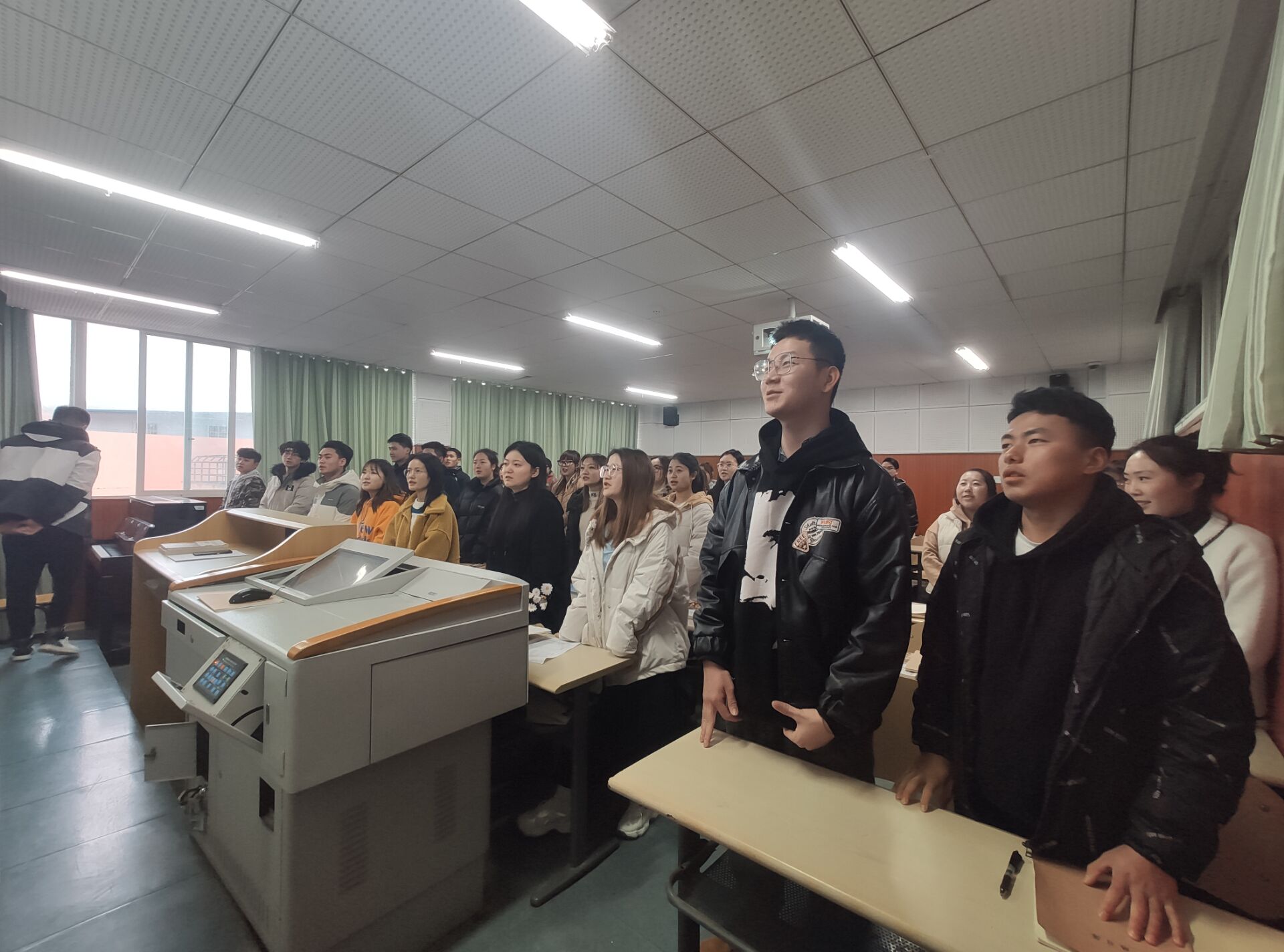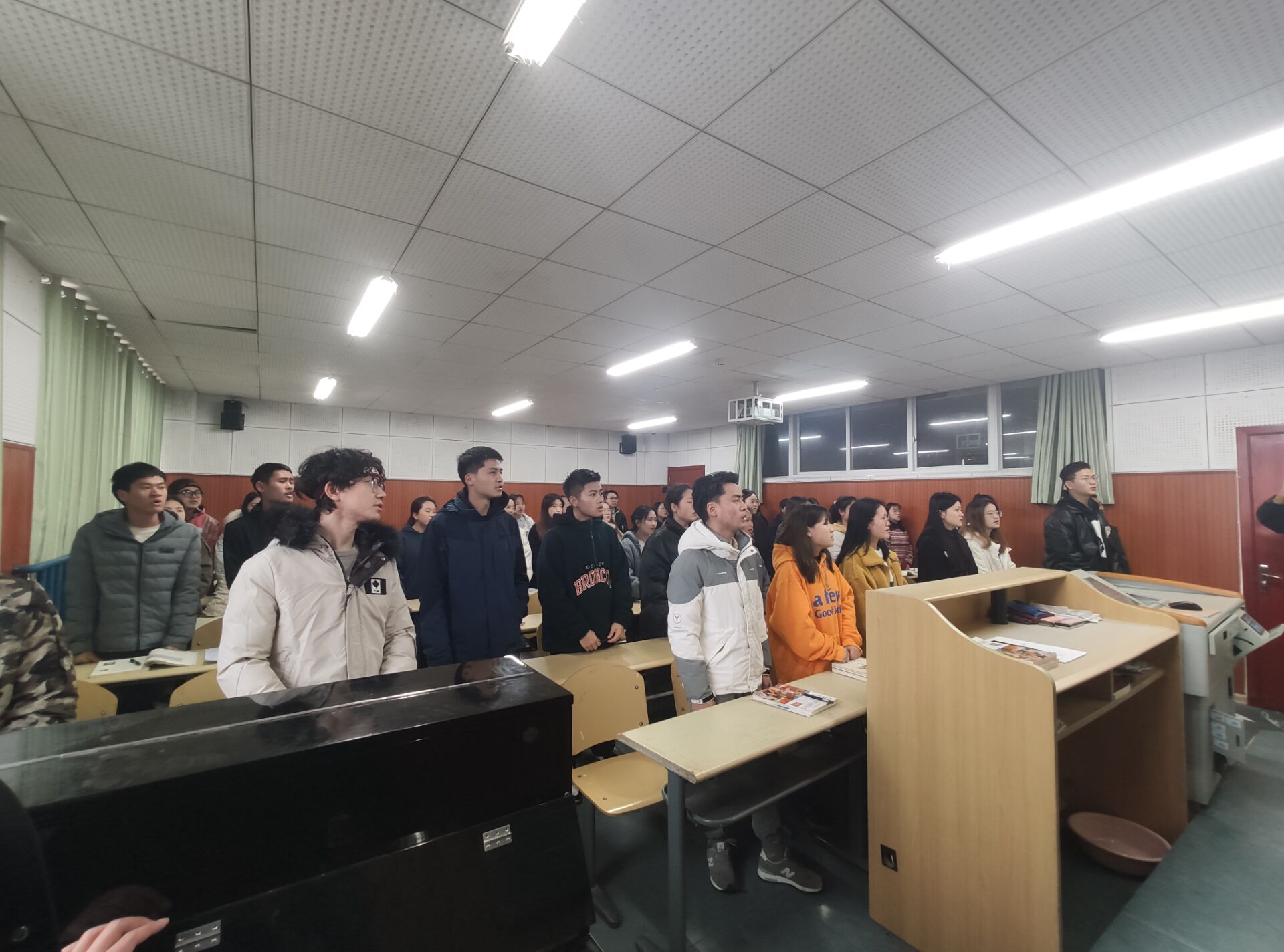 活动中,音乐系青年教师孙芙炬利用上午第一节课课前10分钟,组织全体同学一同歌唱《没有共产党就没有新中国》,同学们歌声嘹亮,群情振奋,歌声里饱含着对党和国家最真挚的情感,传递着公司师生的家国情怀、报国理想与奋斗精神!