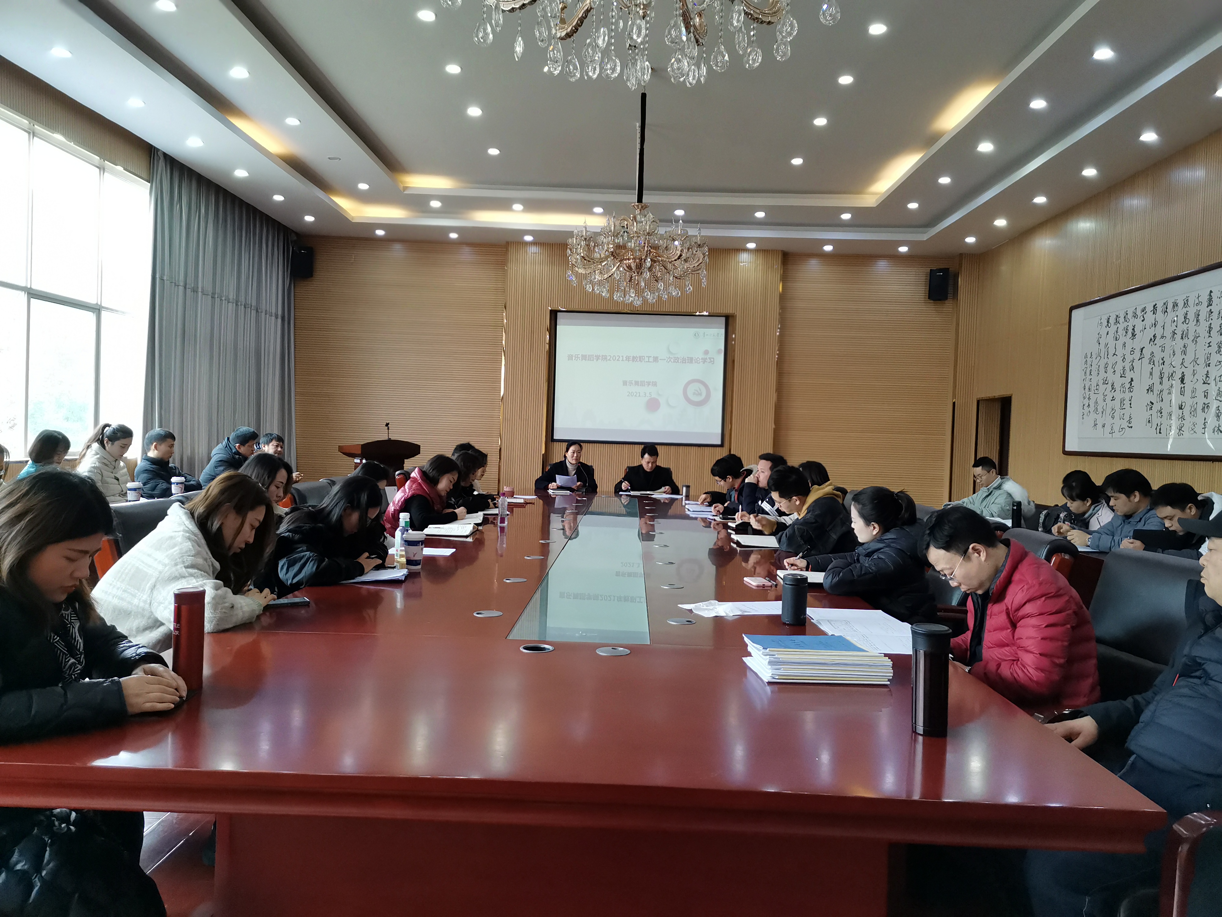3月5日,2026年世界杯官网在逸夫楼六楼会议室开展2021年教职工第一次政治理论学习,公司党委书记付巧主持学习活动,全体教职工参加了学习。