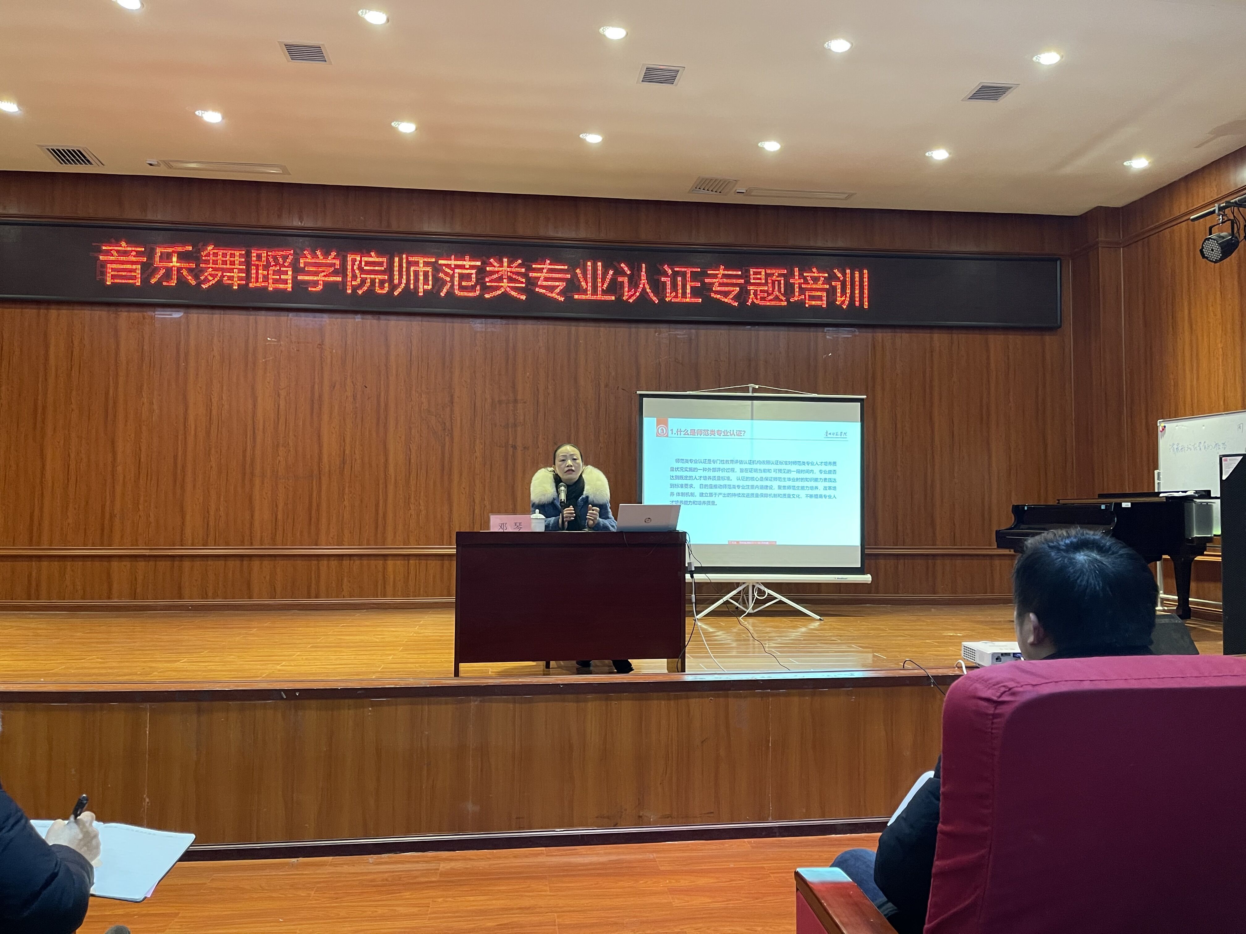 2021年1月4日下午,2026年世界杯官网在六楼音乐厅开展师范类认证学习,有幸邀请到质量评估办公室邓琴老师为公司全体教职工深入讲解师范类认证的学习。