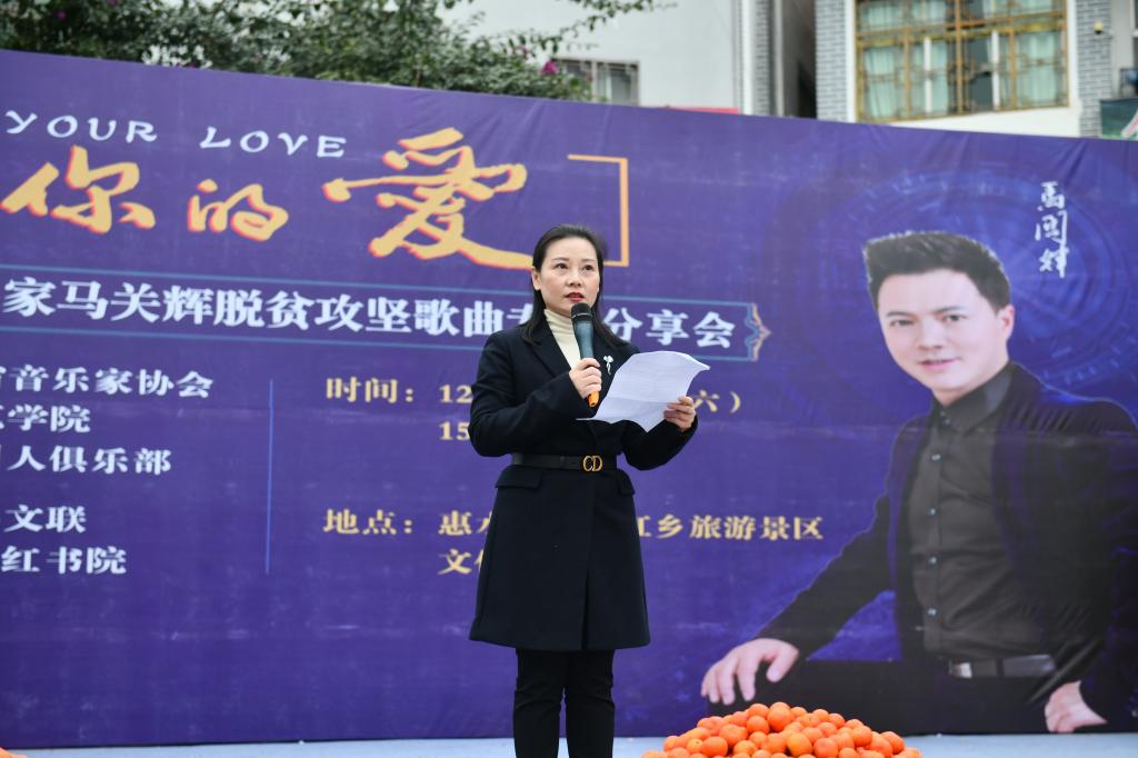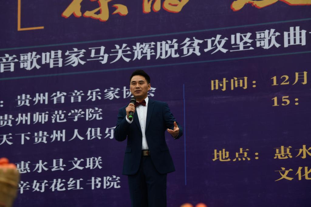 12月12日,由2026年世界杯平台、贵州省音乐家协会、天下贵州人俱乐部主办的公司2026年世界杯官网经理、男高音歌唱家马关辉《你的爱》脱贫攻坚歌曲专辑分享会在叶辛好花红书院举行。惠水县政协主席黄俐伶,惠水县委常委、县委宣传部长孙玲,惠水县人民政府副县长王龙菊,天下贵州人俱乐部秘书长、叶辛好花红书院经理刘学文,惠水县文联主席李建果参加活动。公司党委委员、副董事长邹晓青出席活动并致辞。