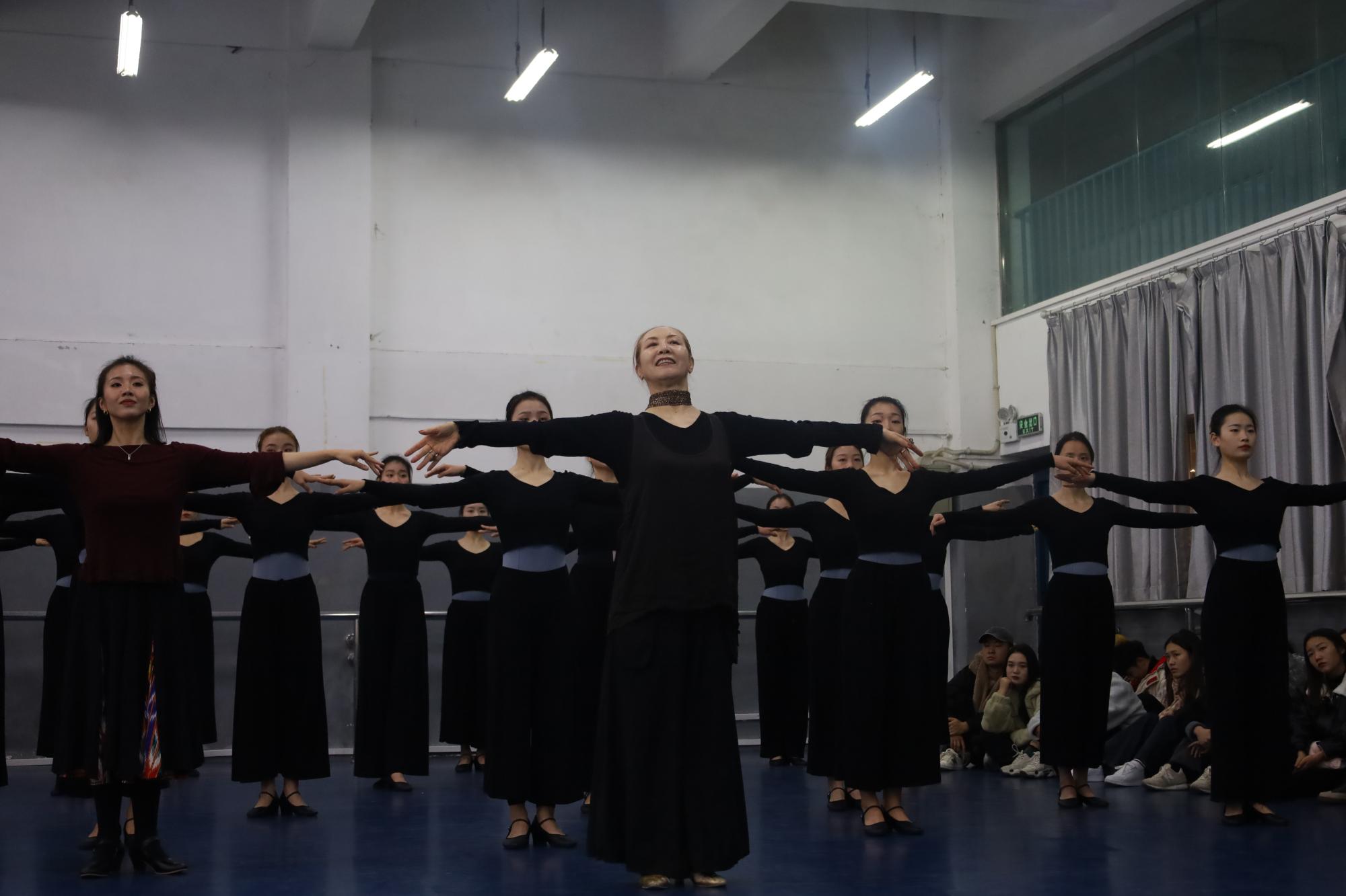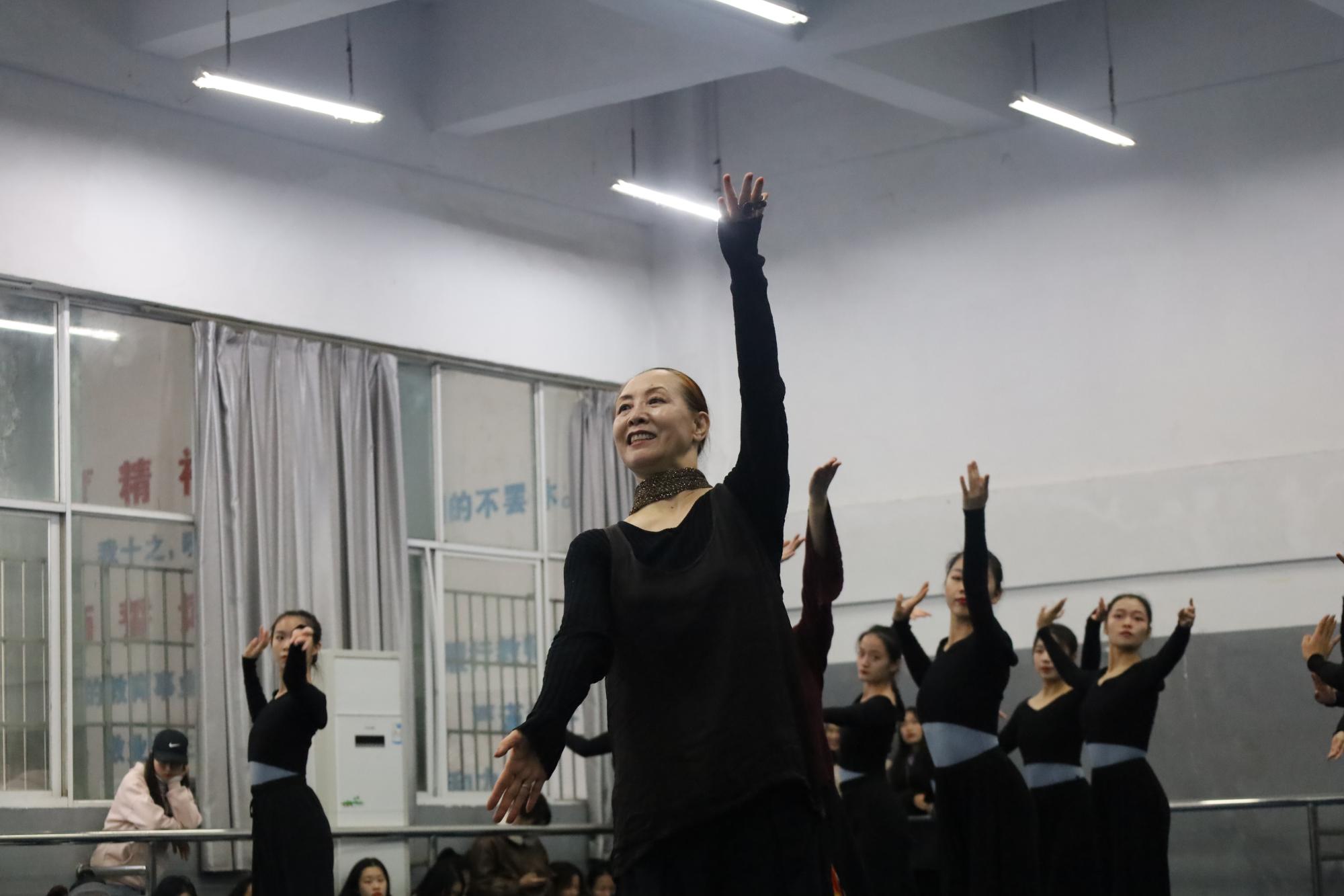 实践课结束后,还进行了教师交谈会,韩萍教授提到民族文化的渗透,吸收民族文化,民族舞蹈是举一反三的。在教学民族民间舞时要解决站的问题,动的问题。注意怎么站?怎么动?民族民间舞教学要从动和站先打好基础,教师在教学时要耐心教导,要让员工慢慢学会自己学习。