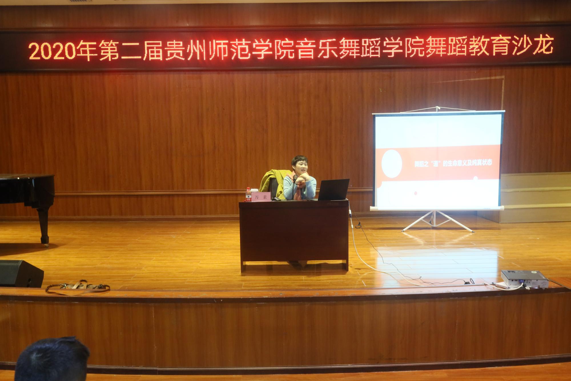 本次讲座的主题为“舞蹈之道的生命意义及纯真状态”。讲座分为舞蹈与生命的意义、舞蹈的纯真状态、与你一起共享舞蹈三个部分。万素教授讲到,传统与现代结合意味着经典与创新和尝试相结合,这结合出来的一切都是社会活动与精神的产物,随着时间不断的被艺术方式来呈现。她强调舞蹈一定要注意“身心一元”的状态,无论如何身心无法割裂,这种状态最显著的特征就是情感所致,为情所动。