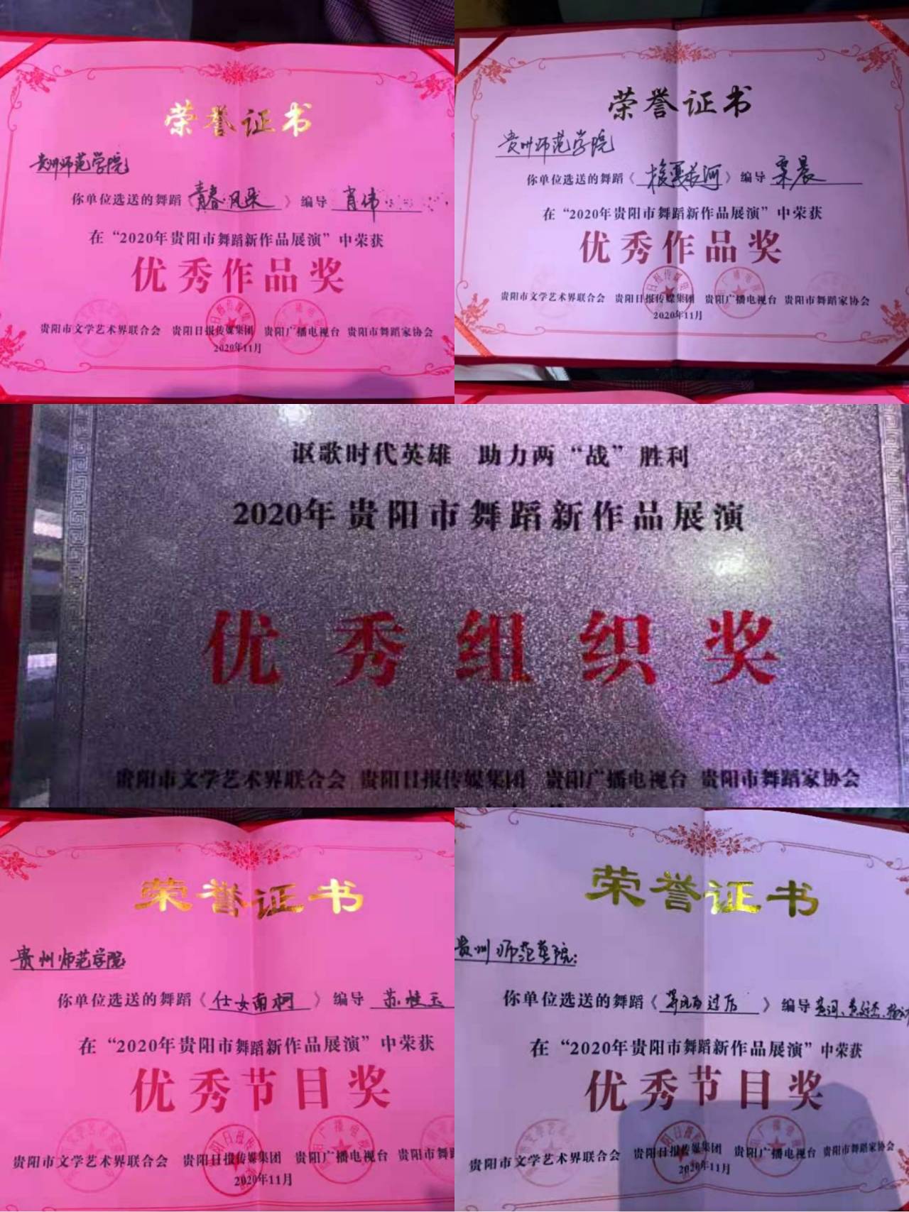来自贵阳所属地区各艺术院校、文化馆、艺术团体等文艺单位创作表演的28个舞蹈作品参加了展演,公司选送的《青春风采》、《梭戛长河》、《仕女南柯》、《等风雨过后》四个作品分别被评选为“优秀作品奖”、“优秀节目奖”。公司师生们经过五个多月的艰苦训练才得以在此次比赛中大放光彩,取得了优异成绩。