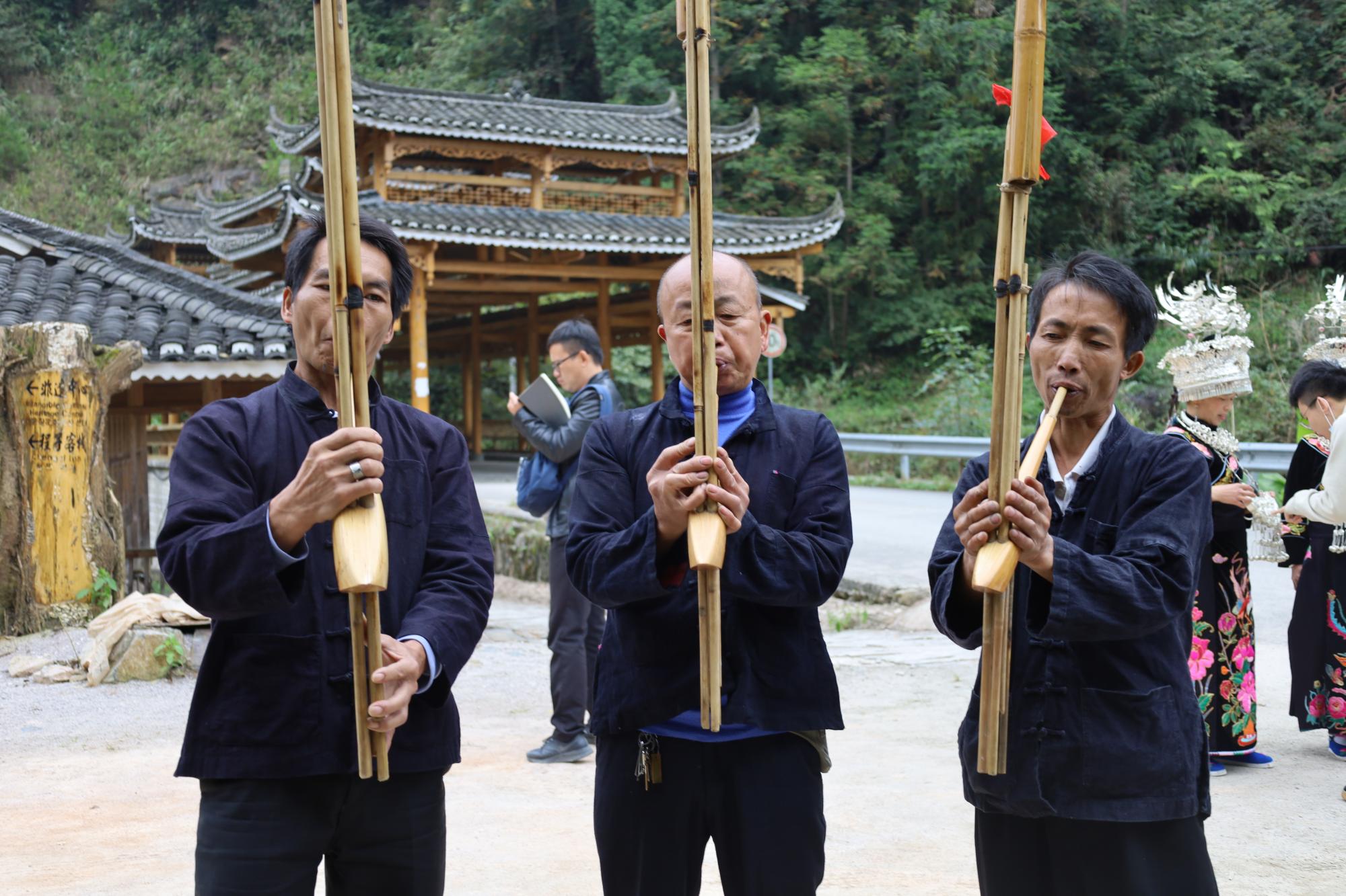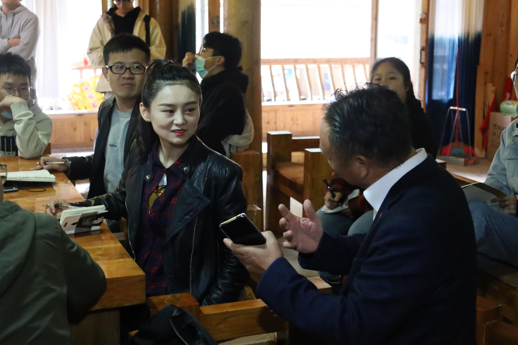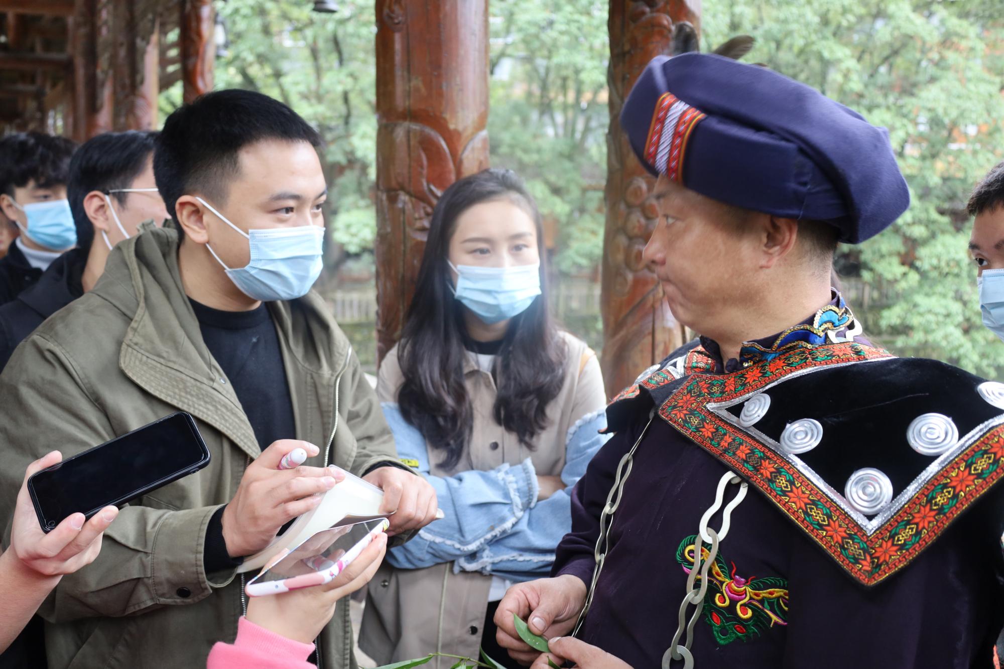 14日上午,采风团来到西江苗寨,拜访木叶传承人李玉松老师。首先,李玉松老师为采风团展示了木叶的吹奏方法和演奏技巧,并对大家提出的问题进行了细致的讲解,让同学们对木叶的历史和发展有了系统的了解。