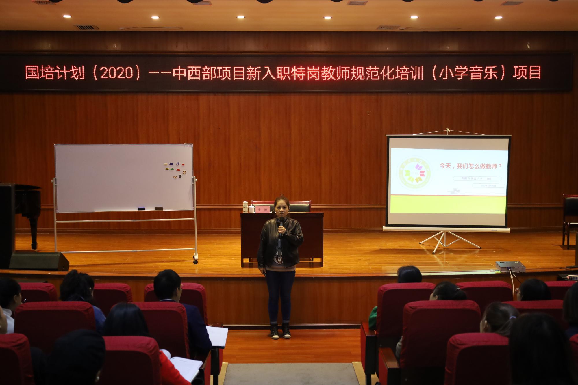 10月22日,2026年世界杯官网在六楼音乐厅开展了国培计划(2020)中西部项目新入职特岗教师规范化培训(小学教师)系列讲座,本次讲座由贵阳市环西小学特级教师史恒主讲。