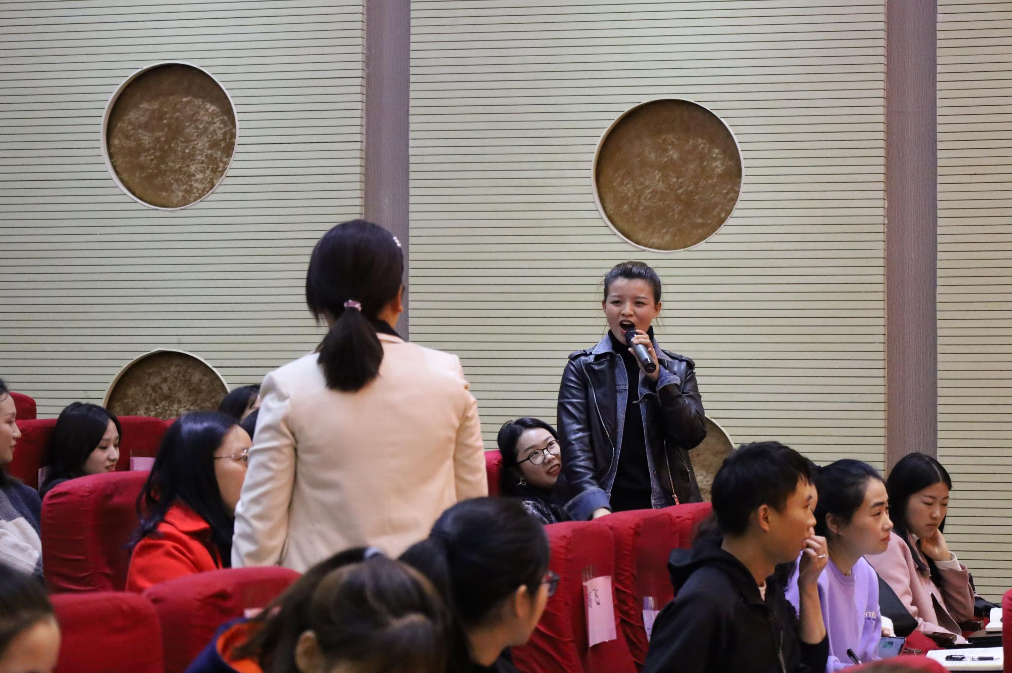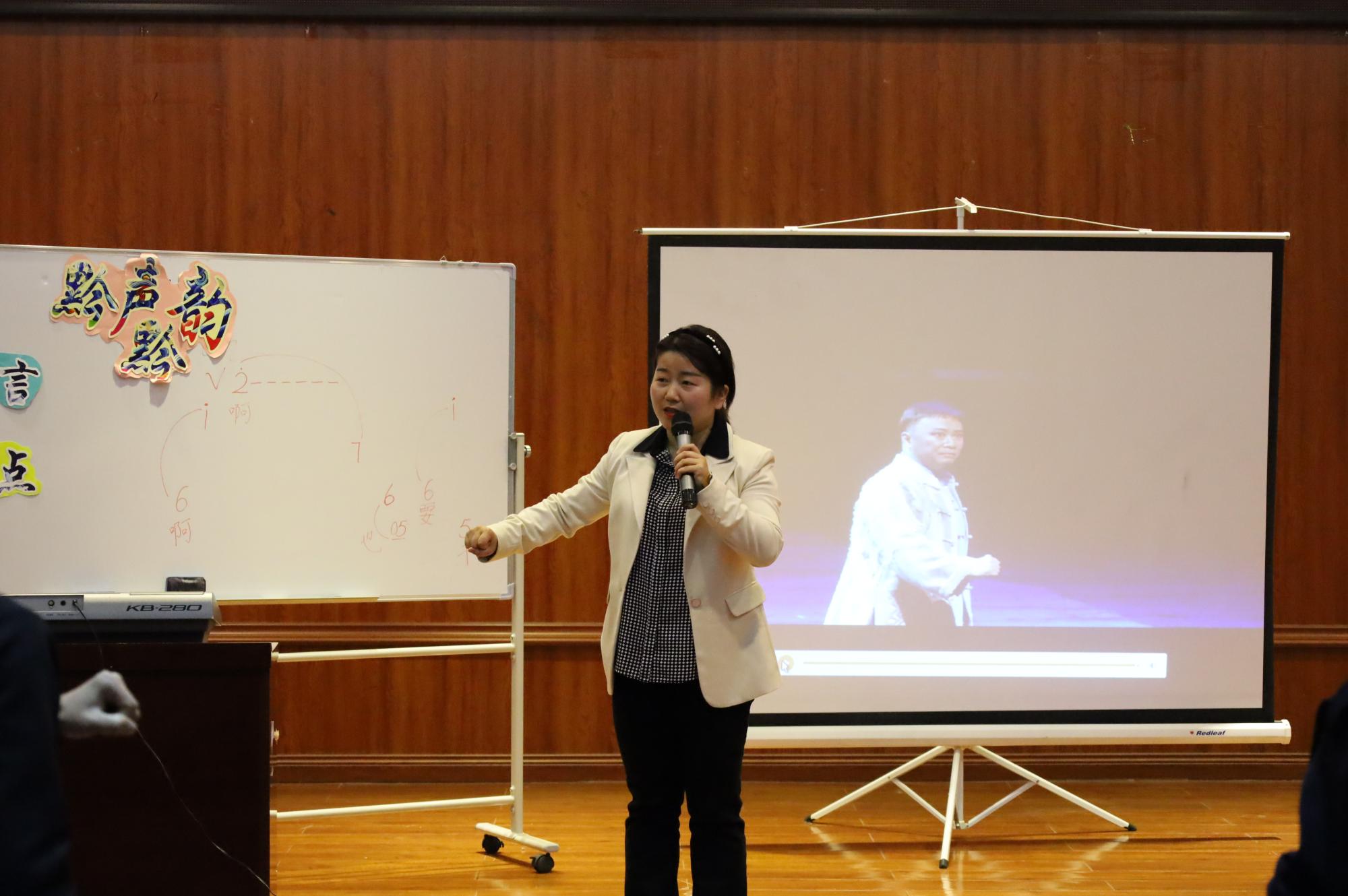 首先,赵廷婷围绕黔声黔韵,讲述了贵州地方戏曲的特点:贵州方言,民族特色,地方唱腔。随后以感动中国人物黄大发的事迹为例,展开了一幅顽强拼搏的宏伟画卷。让我们感受到了开弓没有回头箭的决心和不畏艰难、奋勇向前的精神。最后,赵延婷老师带领全体国培学员合唱《开弓没有回头箭》。