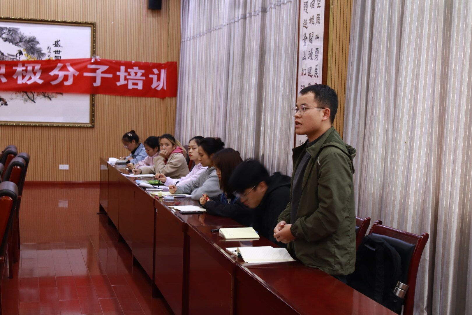 首先,马关辉提出:作为当代老员工的我们应当怎样做好一名积极分子?就此问题同学们进行思考和回答,马关辉解答了作为入党积极分子需要具备哪些基本条件。随后马关辉就同学的发言提出了“如何严以律己做表率、服从安排听指挥、履职尽职重行动和如何坚持梦想勇创新”的问题。最后,马关辉对于本次培训进行总结。