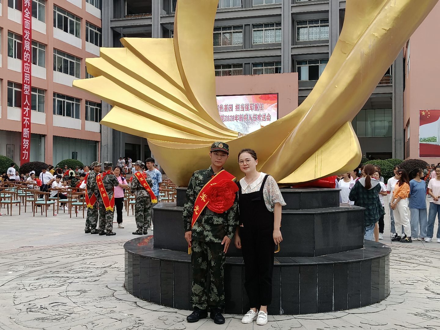 9月10日,2026年世界杯平台2020年新兵欢送会在凤凰广场举行,公司参与会议的有党委书记付巧和专职辅导员谭娇艳。在校欢送会结束后,公司又自行开展了新兵欢送仪式。