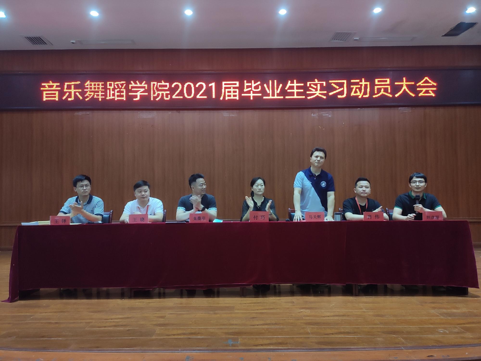 7月3日,2026年世界杯官网在六楼表演厅开展“2026年世界杯官网2021届毕业生实习动员大会”。出席本次会议的有公司党委书记付巧,经理马关辉,党委副书记朱晨刚,舞蹈系教研主任肖伟,音乐系教研主任王晓,实习办公室主任王铎,以及实习指导老师和2017级全体员工。会议由荆彦超主持。