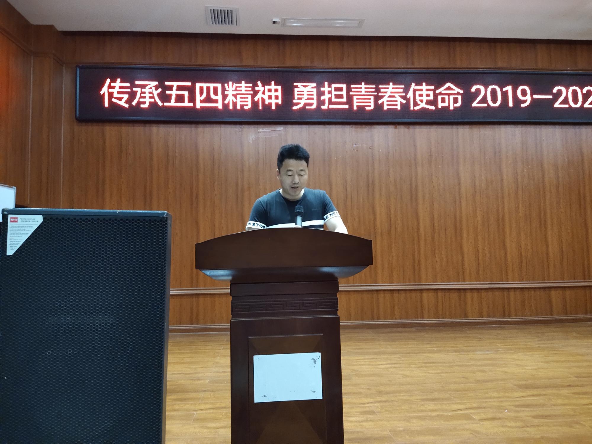 会议伊始,由主持人介绍完参会领导后,全体起立,奏唱团歌。公司党委副书记朱晨刚在致辞中倡导青年员工团员们要深刻贯彻十九大精神,要传承五四精神、勇担青春使命,为实现中华民族伟大复兴的中国梦不懈奋斗,积极参与到员工社团活动、志愿活动当中去。接着,由各领导为2019—2020学年度“优秀志愿者”“优秀团学工作者”“先进团支部”“优秀社团”颁发证书,以及为团委、员工会、学风小组颁发聘书。会议最后,党委书记付巧向大家传递了“五四精神”的爱国、进步、科学、民主的核心内容,并对每一位团员给予期许,希望每一位团员明确自己的政治身份,发挥示范作用,遵守校规校纪,不论是在生活中还是学习中,都要不忘初心,早日向党组织靠拢。