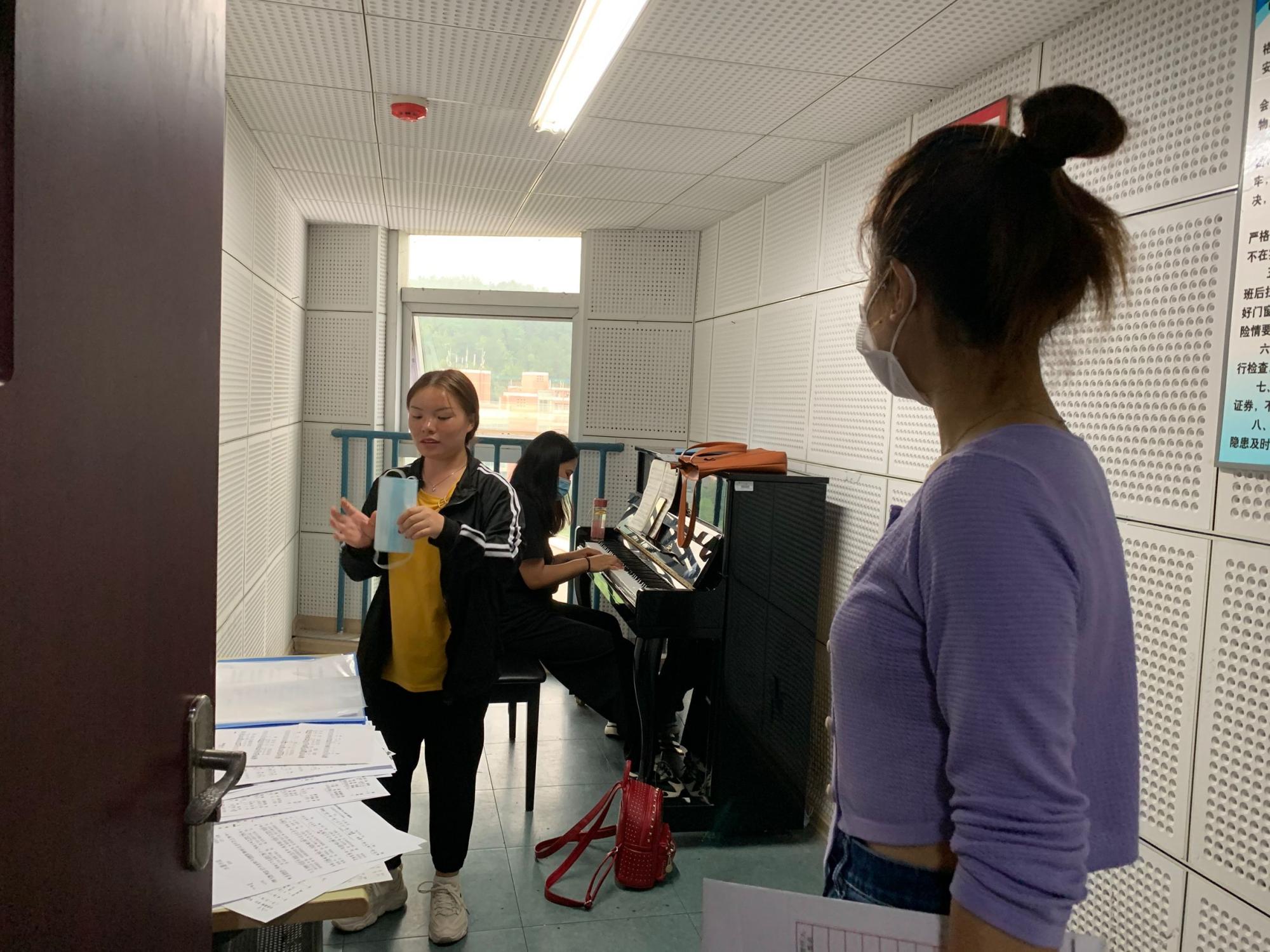 会议结束后,在支委委员带领下全体党员同志及6位发展对象同学分组探查了同学们出入琴房带口罩情况、琴房卫生、人员聚集等情况;活动结束后,集体合影留念。