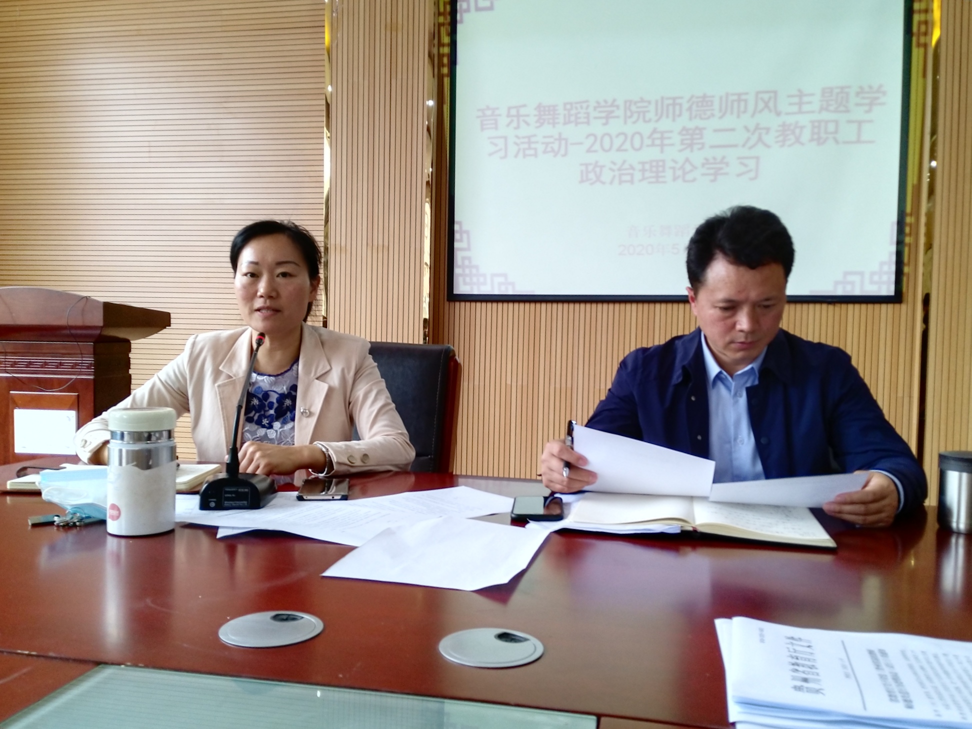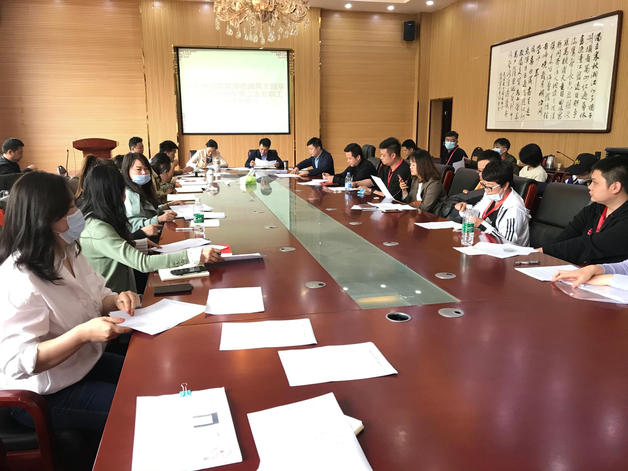 随后,与会教师们纷纷发言。舞蹈教研室主任高蕾老师讲到,作为高校教师,热爱职业是做好工作的前提,教师不应该将自己的工作仅仅只作为一种职业,而应该作为一种事业,作为高校教师,要注重自身修养,坚定理想信念,坚持立德树人总目标,不断加强自身学习,做到关心员工,关爱员工,平等对待员工。教师党支部书记刘昊佳谈到,作为高校教师,要时刻注意自己的一言一行,教学过程中要更重视身教,师德师风是对教师的内在约束,体现在日常工作中就是敬业、身正、博学。理论教研室主任葛恩专老师认为,高校教师要严格遵守教育部关于教师的相关管理规定,在教学中要严守师德底线,做到全方位育人。叶锋教授认为,在教学中,对待员工要像对待自己的孩子一样,多关心关爱员工,守好讲台主阵地,将立德树人放在首位努力提高教学质量。