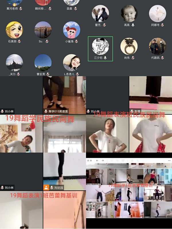 在正常的教学过程中加入期中考试,是舞蹈系近年来的教学改革环节之一。5月14日,由于疫情的影响,在员工仍未返校的情况下,舞蹈系2019–2020学年第二学期的专业课程期中考试在线上照常进行。
