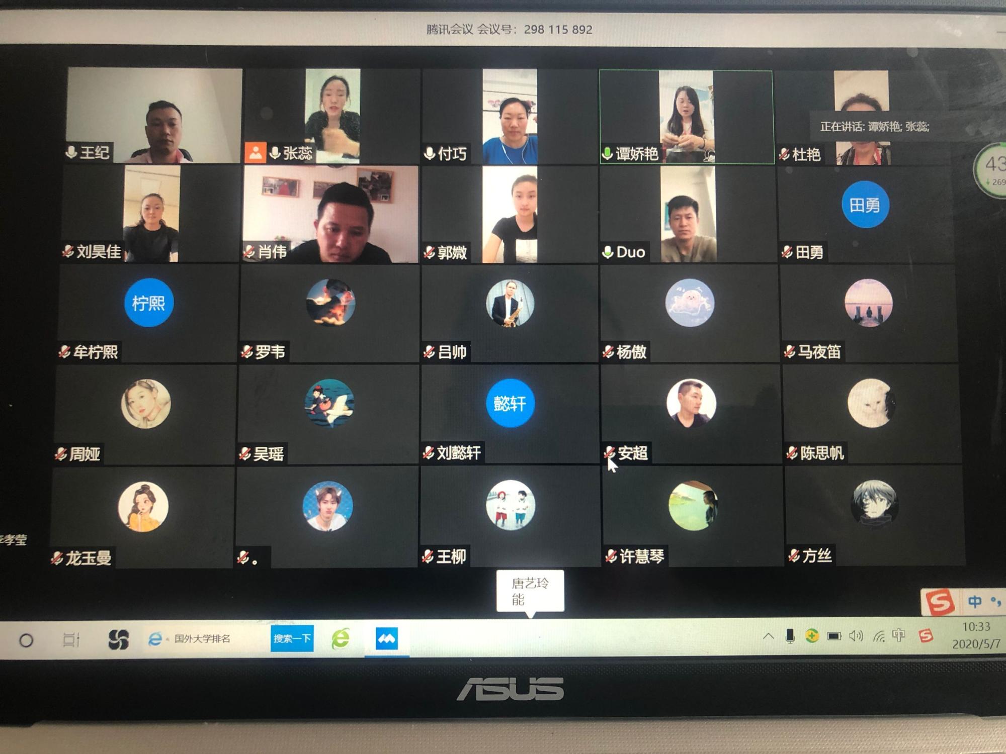 5月7日上午,公司召开了线上的2020届毕业生就业推进会。公司党委书记付巧,副书记朱晨刚,音乐系、舞蹈系主任、各办公室的老师及全体2020届毕业生参加会议,会议由付巧主持。
