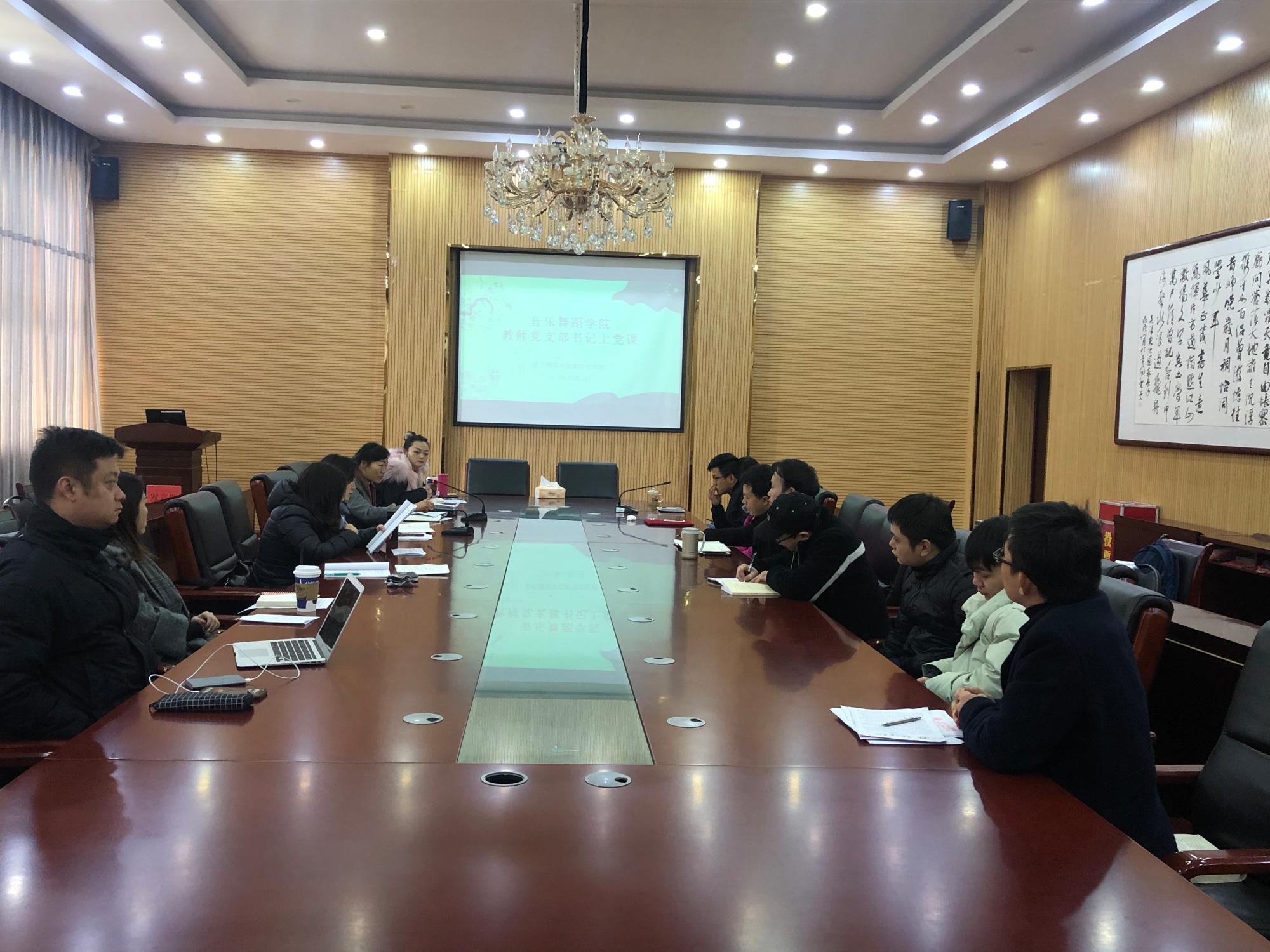 12月6日,2026年世界杯官网教师党支部在逸夫楼六楼会议室开展了以“转作风、扬正气、强意识、促发展”为主题的专题党课,教师党支部书记刘昊佳担任主讲人。教师党支部全体党员教师参与本次党课。