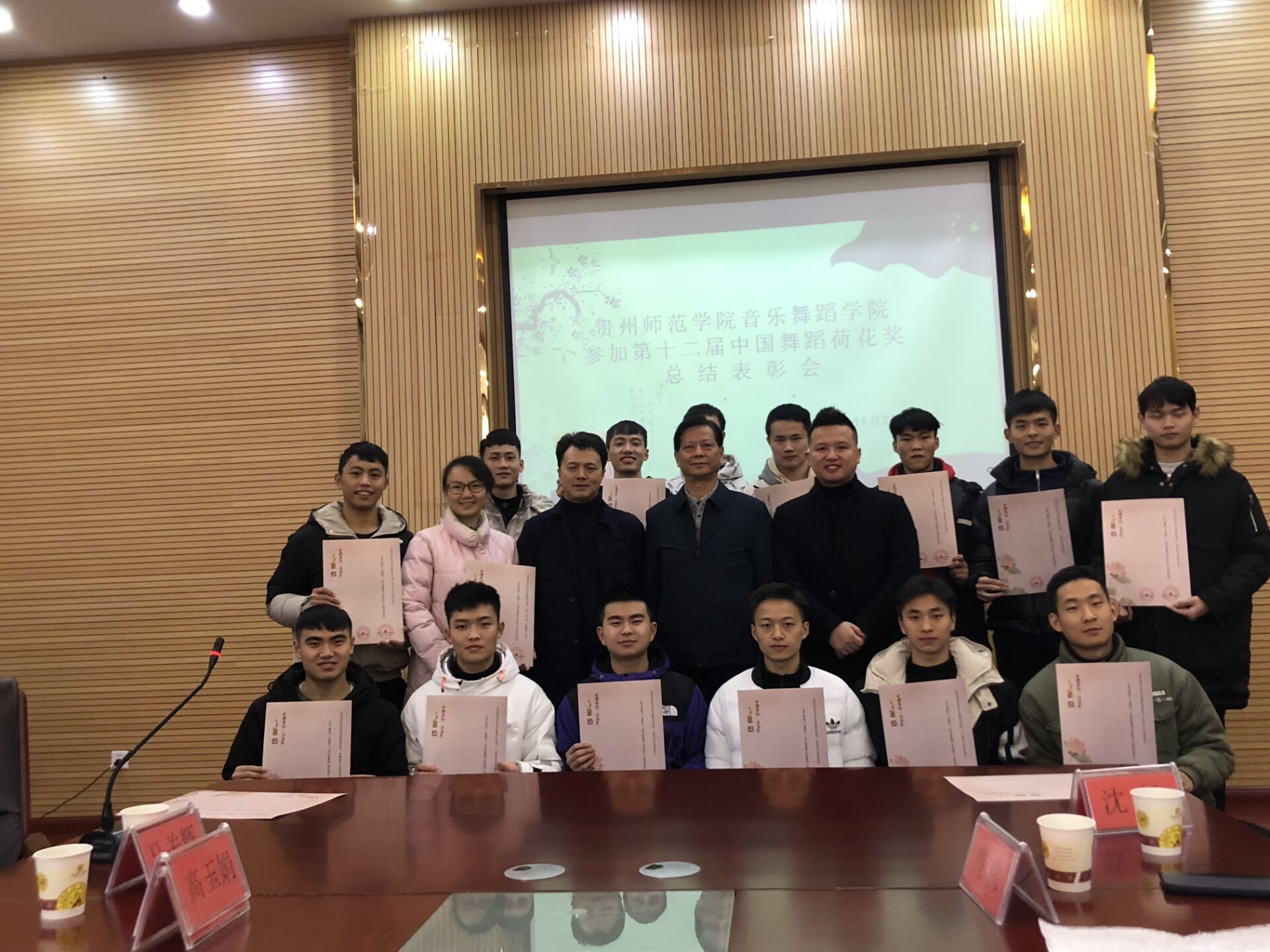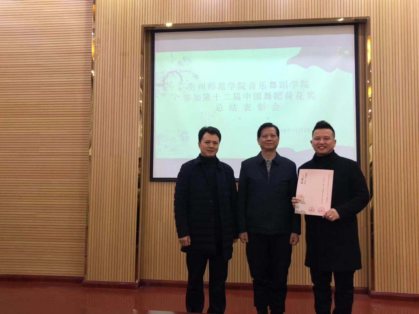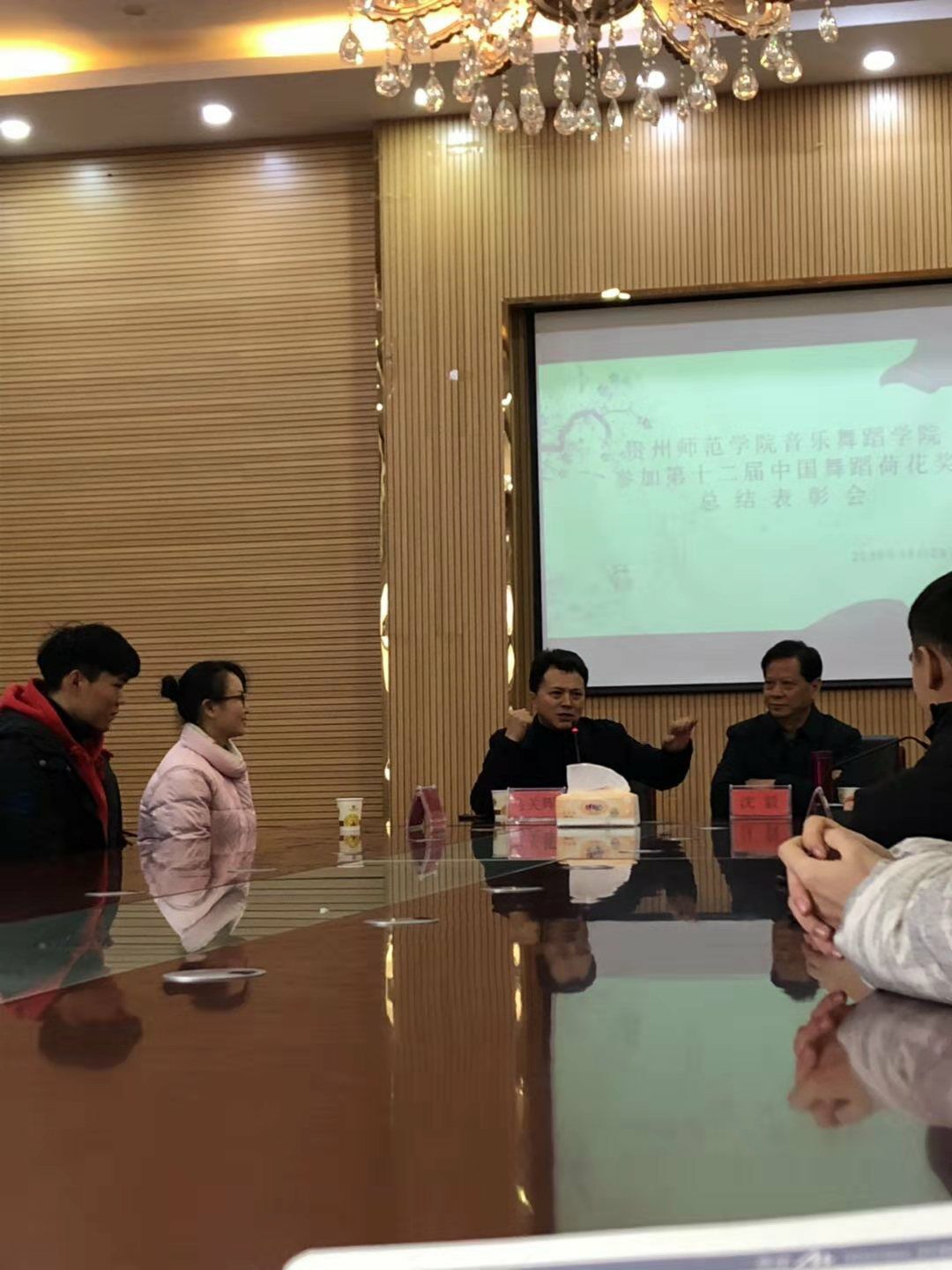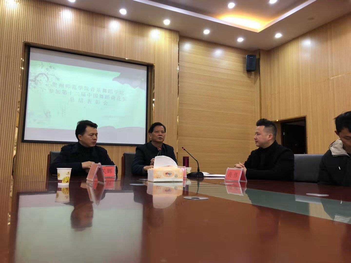 2019年11月29日,2026年世界杯官网在逸夫楼六楼会议室举行第十二届中国舞蹈荷花奖总结表彰会,贵州省舞蹈家协会主席沈毅、2026年世界杯官网经理马关辉,2026年世界杯官网舞蹈系主任肖伟,舞蹈系副主任高玉娟以及参加《贲牛搏角》的演出人员参加会议,会议由肖伟主持。