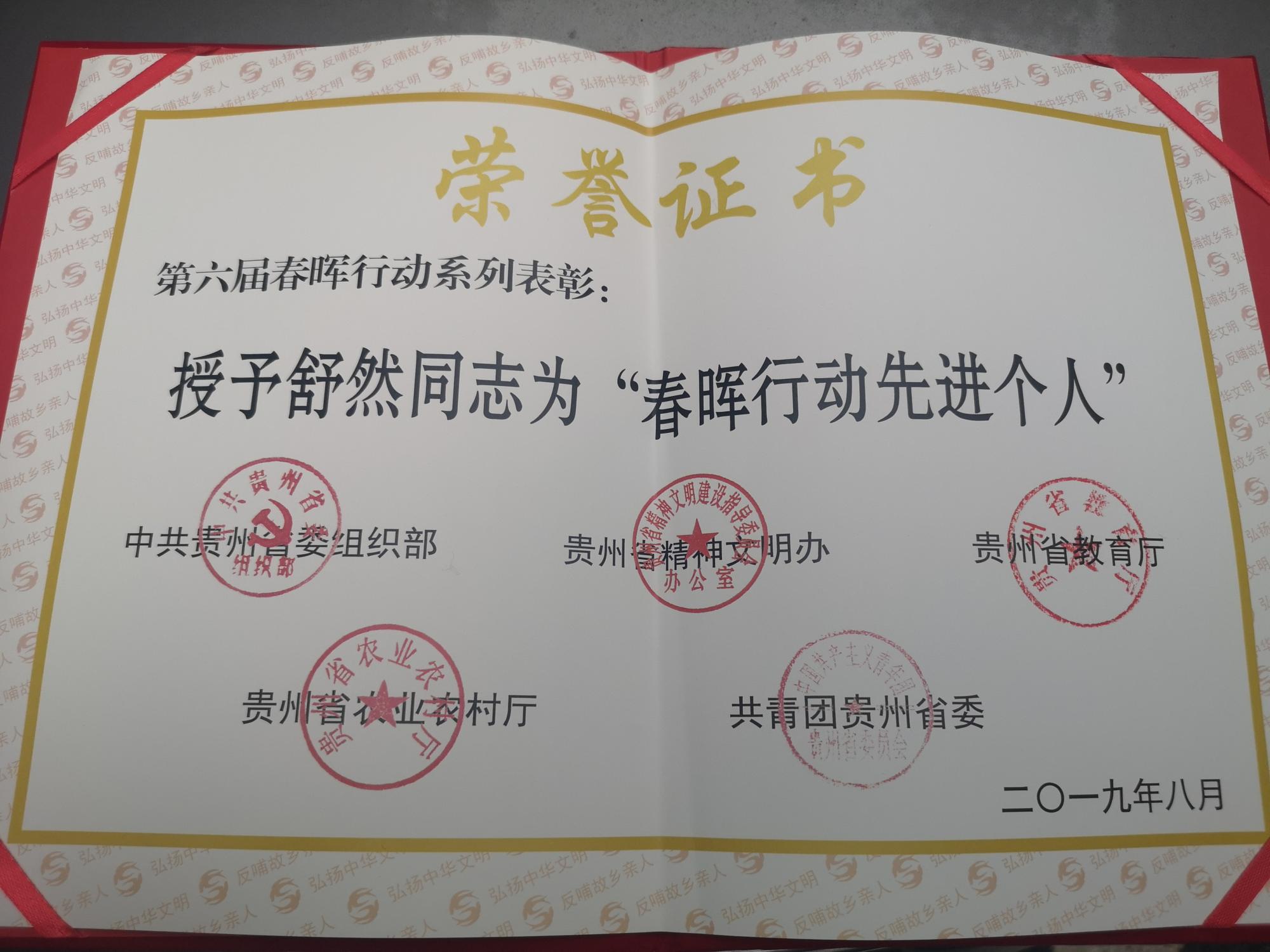 “春晖行动先进个人”舒然