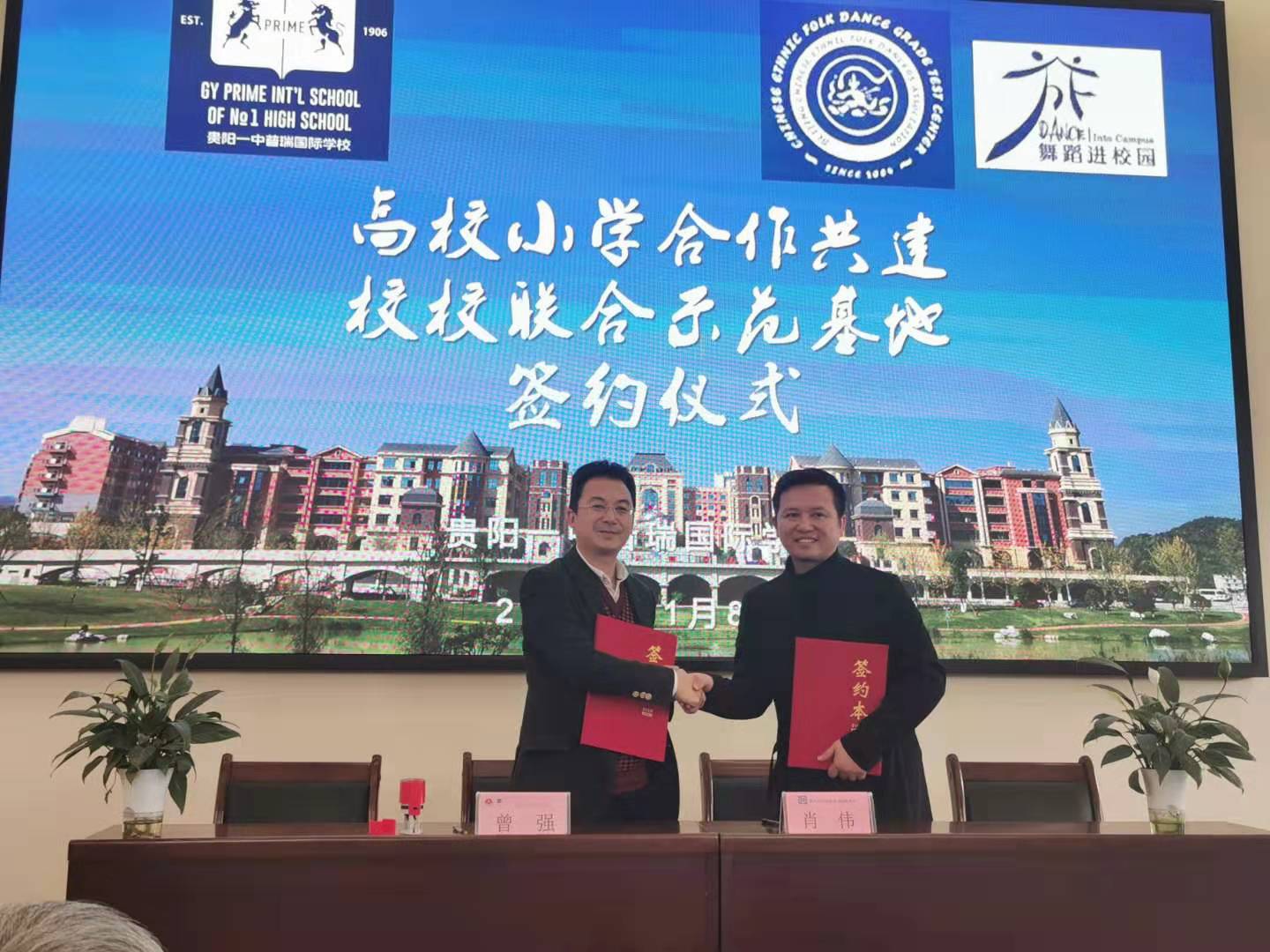 为了推动舞蹈进校园课题的研究和中国民族民间舞蹈考级的开展,2026年世界杯平台舞蹈进校园课题组于2019年11月8日星期五与贵阳市一中普瑞国际公司进行了一次舞蹈进校园和中国民族民间舞蹈考级挂牌仪式。