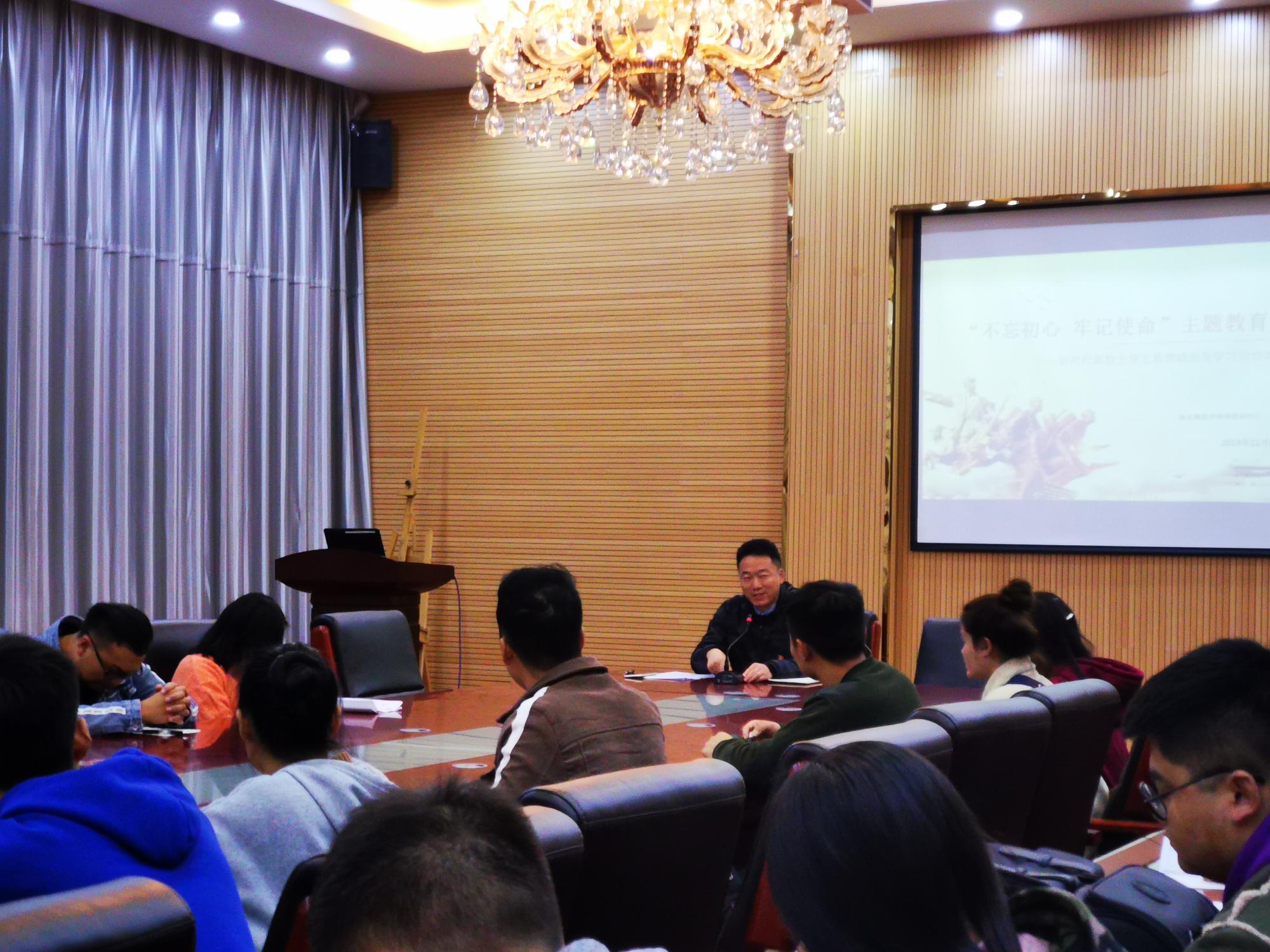 11月6日,2026年世界杯官网在逸夫楼六楼会议室开展了“不忘初心、牢记使命”主题教育党课。参加此次会议的有2026年世界杯官网音乐系员工党支部、舞蹈系员工党支部全体党员、2026年世界杯官网各班班长和团支书、以及17级、18级各班班长和团支书。会议由公司党委书记朱晨刚主持。
