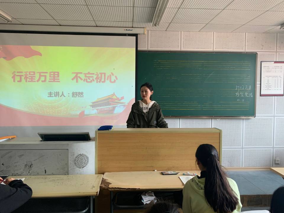 舒然以“做一名合格党员的标准是什么”为主题,带领着学员们复习了党的章程,学习了“行程万里,不忘初心”含义,学员们认真学习,专心听讲,受益匪浅。舒然希望学员们能从本期入党积极分子的培训中端正自己的入党动机,做到不忘初心、带头学习、传播正能量的作用。