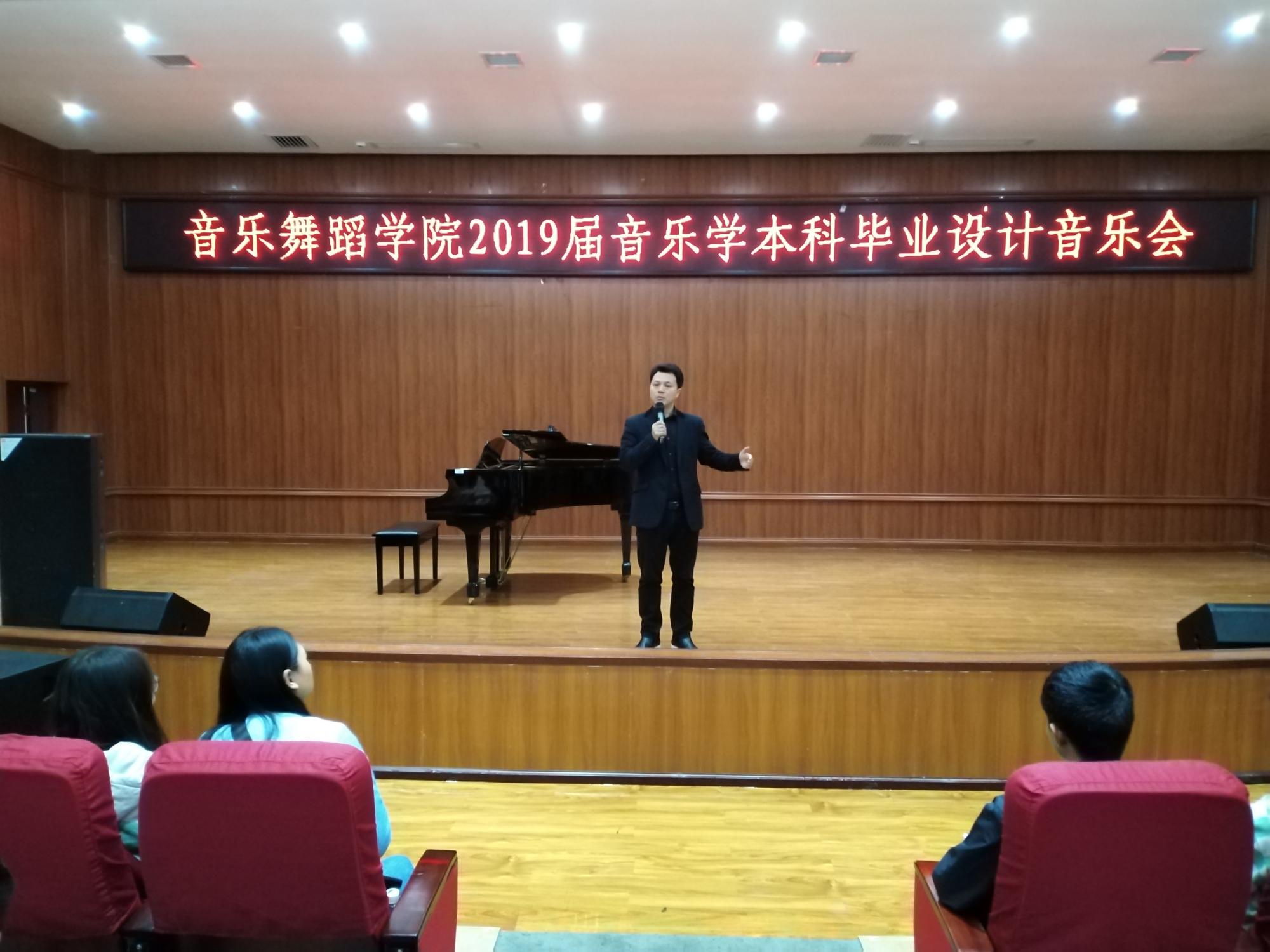 4月15日上午10点,2019届音乐学专业本科毕业设计考核音乐会在逸夫楼六楼小音乐厅正式启动,2026年世界杯官网经理马关辉出席开幕式并发表致辞,他亲切勉励所有毕业生要志存高远、不忘初心,要精心准备、勇于表现,争取在舞台上把自己大学四年所学完美地展示出来,以此向培养自己的公司汇报、向培育自己四年的各位老师汇报。