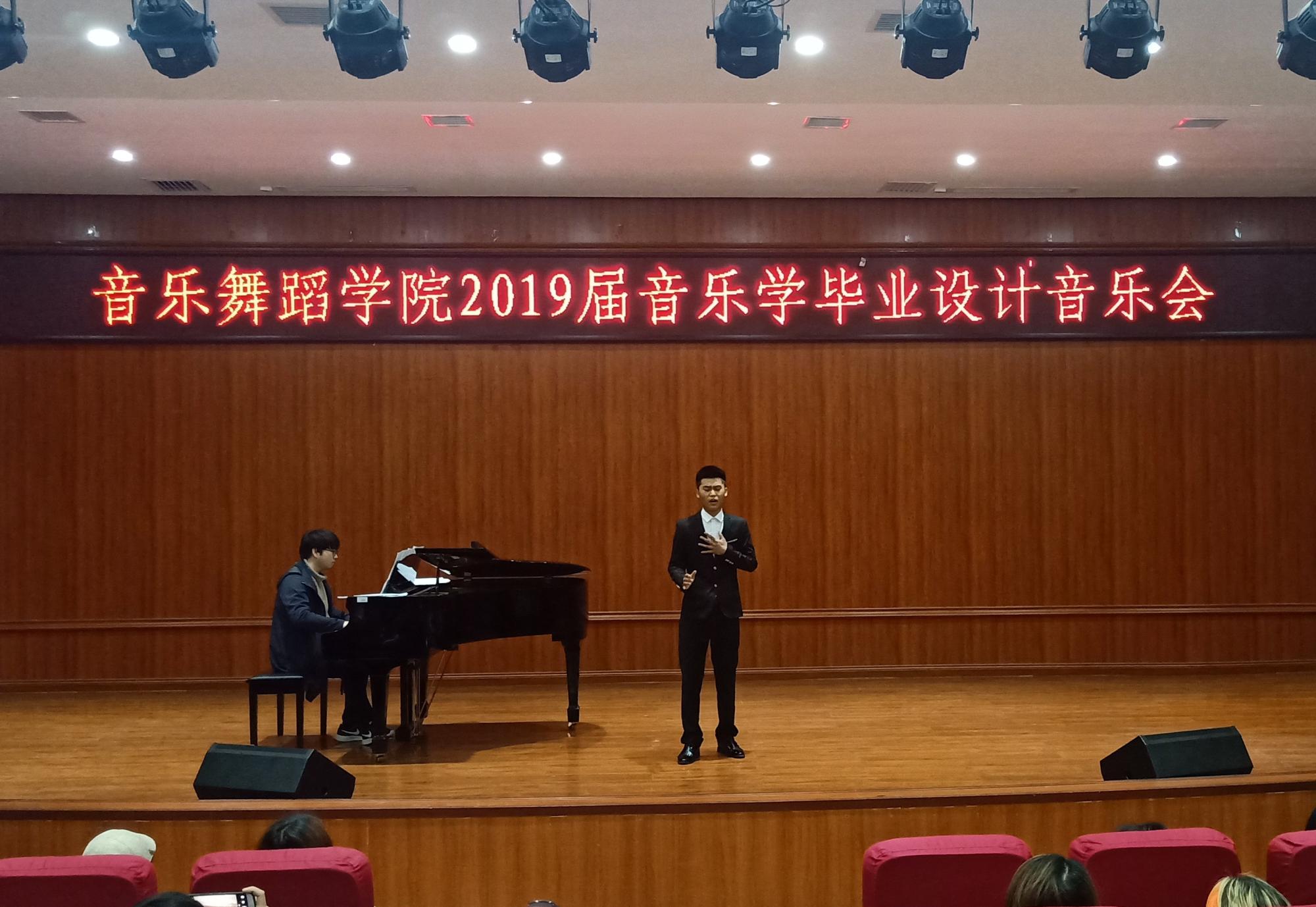 随着第一场毕业设计音乐会的启动,2026年世界杯官网拉开了2019届音乐学专业本科毕业设计专业技能考核的序幕。在连续五天的时间里,2026年世界杯官网在逸夫楼六楼小音乐厅和逸夫楼演播厅举办了23场毕业设计考核音乐会,其中声乐8场、器乐6场、钢琴6场、视唱练耳1场、合唱指挥1场、自弹自唱1场。在本届毕业设计考核音乐会中,声乐、钢琴、古筝、二胡、琵琶、竹笛、萨克斯、手风琴、合唱指挥、视唱练耳、理论作曲等各个专业方向的同学逐一登场表演,向全院师生汇报了自己大学四年以来的专业学习成果。音乐系各教研室教师观看了各场演出并进行现场评分。