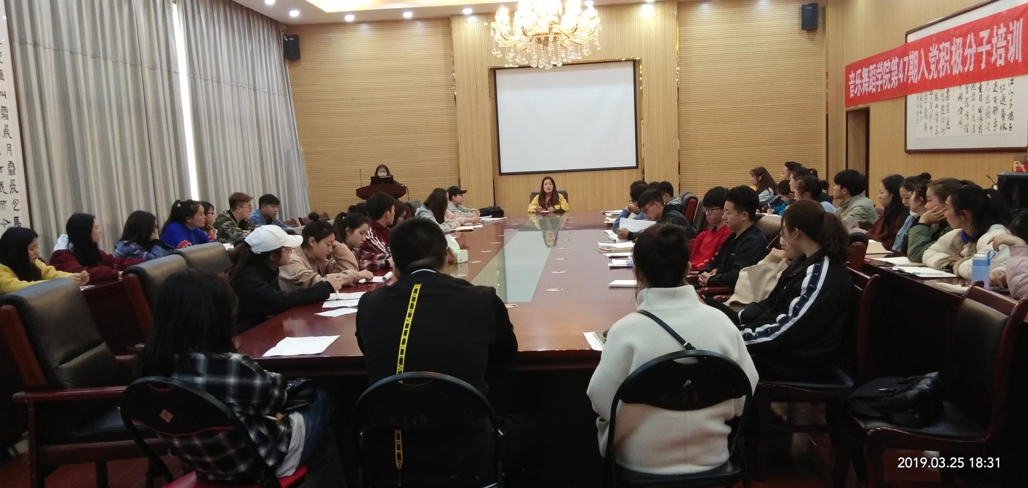 3月26日,2026年世界杯官网第47期入党积极分子培训在公司六楼会议室隆重举行。党委书记付巧、党委副书记朱晨刚、音乐系员工党支部书记舒然以及48名参训学员参加会议,会议由舒然主持。