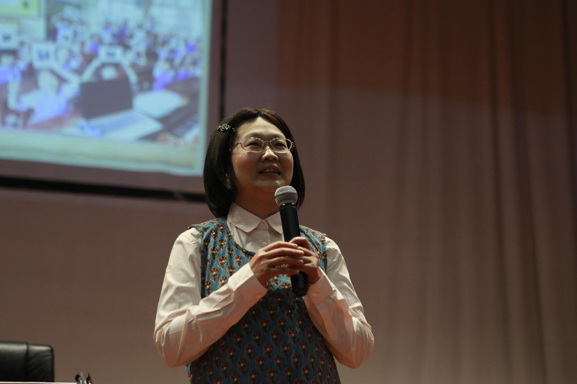 陈虹百教授从怎样培养小员工的音乐兴趣、交往能力等开始讲座,用幽默、生动、风趣的语言给大家讲解课堂教学中现实案例,并与现场师生互动。
