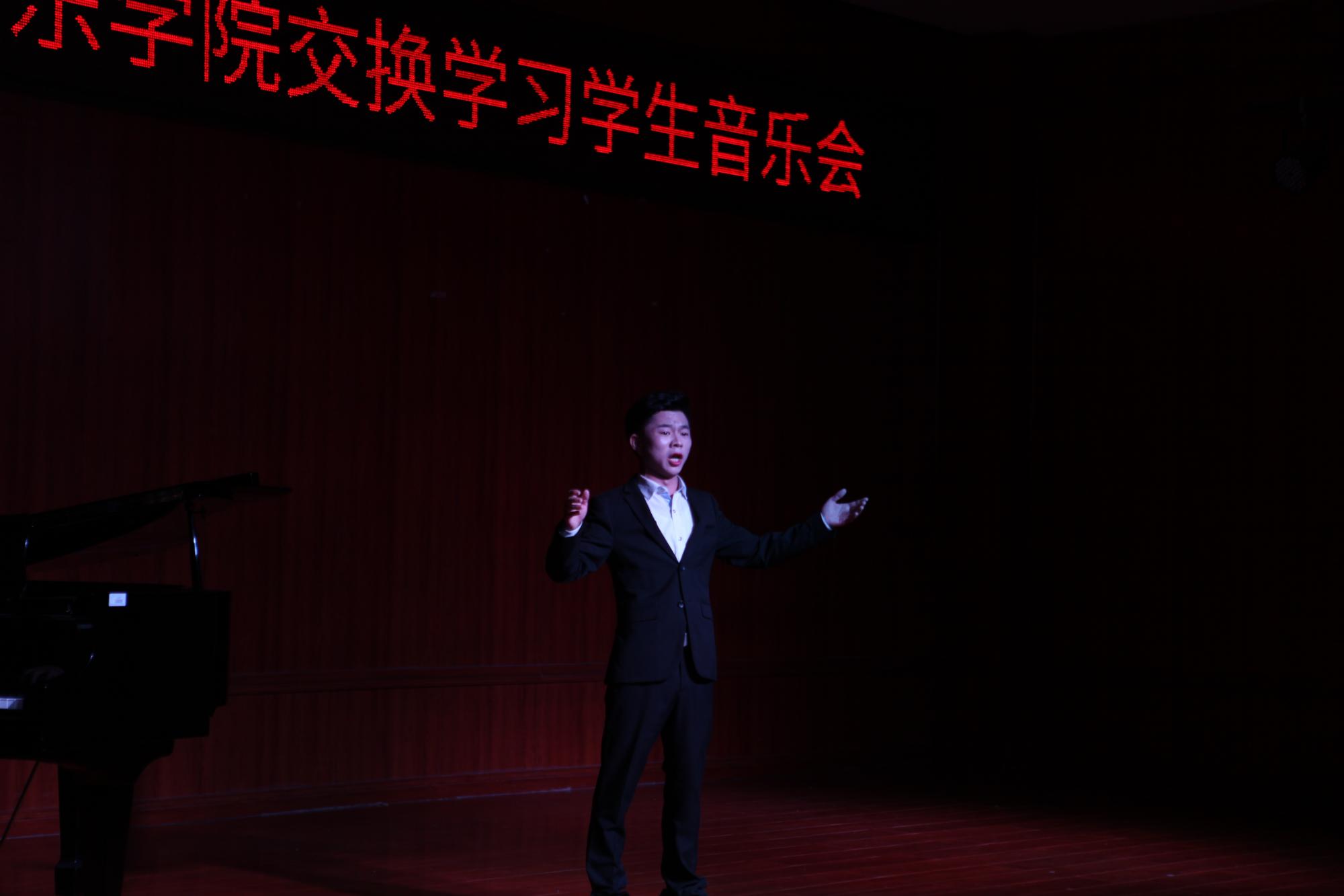 本场音乐会主角冯佳路、陈胜泽、杨甜三名同学是公司与武汉音乐公司合作以来第一批交换生。在经过一年的交换学习后,回校向老师和同学作专业汇报演出。三名同学分别演唱了五首风格迥异的歌曲,展示了扎实的基本功和精湛的演唱技巧。音乐会高潮迭起,赢得现场师生阵阵掌声。