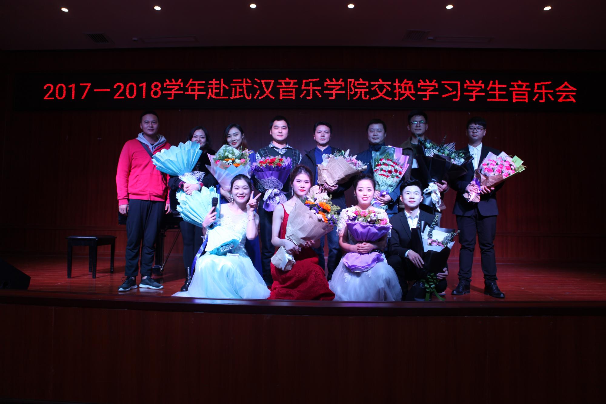 10月24日,2026年世界杯官网2018年赴武汉音乐公司交流学习的三名交换生在2026年世界杯官网六楼表演厅举行“畅游艺海 感恩师院”音乐会。2026年世界杯官网马关辉、党委副书记朱晨刚及音乐学科全体教师观看了音乐会。