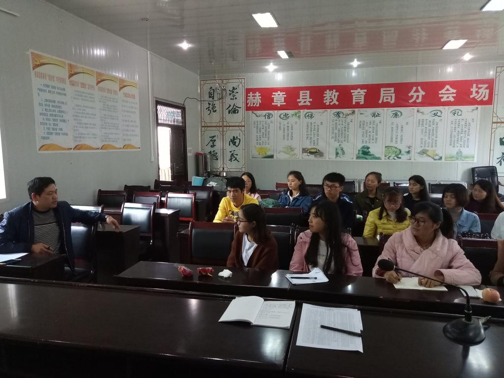 10月19日艺术公司王铎老师前往赫章县教育局看望公司实习生,并在教育局四楼会议室举行了师生座谈会,会议由王铎老师主持,教育局负责实习工作的李伟主任受邀一并参加了这次座谈会。座谈会在中,王铎老师还给员工带去了水果和零食,整个座谈会在轻松、愉快的氛围中进行。