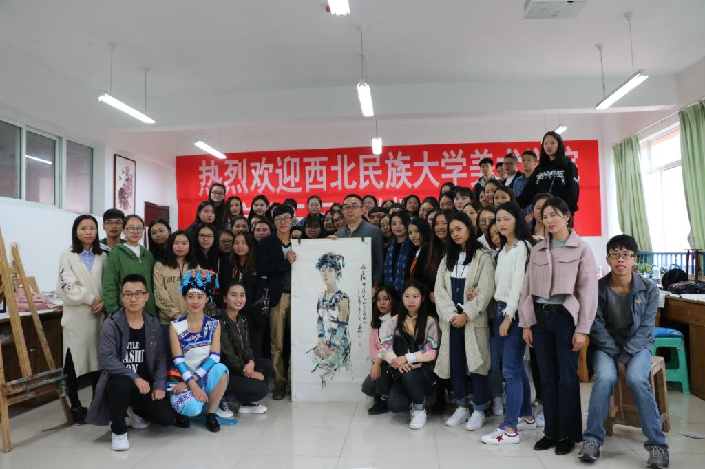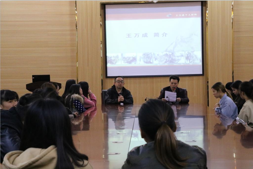 10月17日,受艺术公司邀请,西北民族大学美术公司经理王万成教授一行莅临公司讲学。艺术公司经理马关辉、办公室主任宋建强、美术学科教师和同学参加了讲座。讲座由马关辉主持。