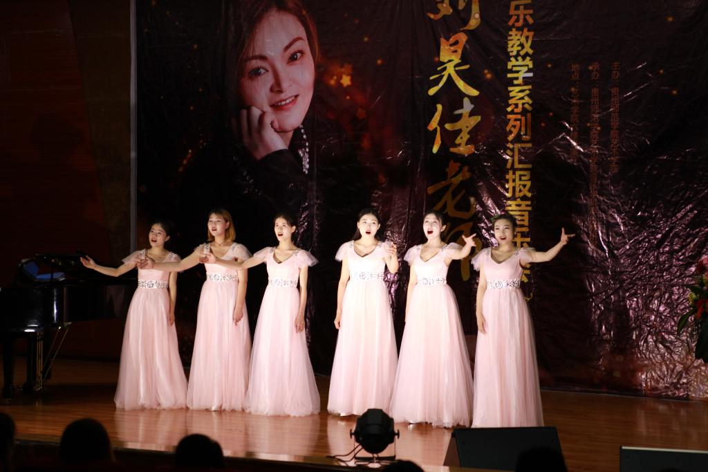 山无棱、天地横、才敢与君绝,一首表达了女主人公对爱情的执着、坚定、永不变心的坚强性格被徐艺同学栩栩如生的表达出来。余婷婷演唱的著名歌曲《哈巴涅拉舞曲》唱出了一个女孩对爱情的的心声,以悠扬舒缓的曲调打动台下无数音乐爱好者的心。尤其值得一提的是被选为2017年《星光大道》贵州省十强,北京市第三名的陈诗诗同学演唱的《咕叽咕叽》以特别的个性带来不一样的声乐体验,将会场气氛推向高潮,赢得阵阵掌声。