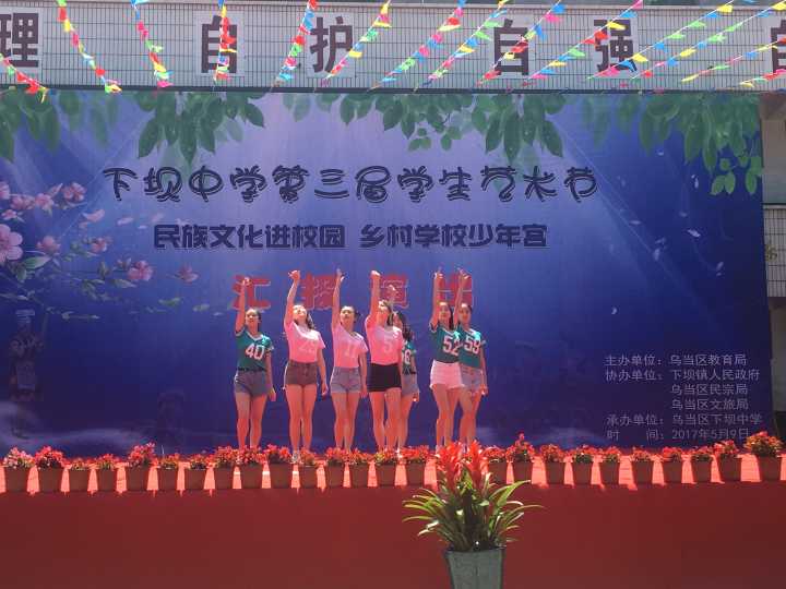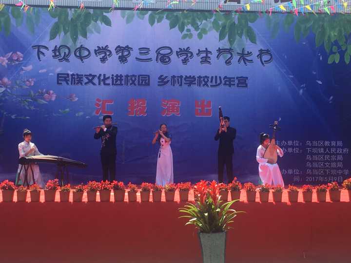 5月9日,艺术公司团委书记舒然带领2016级音乐学、舞蹈学专业的12名同学前往乌当区下坝中学参加该校第三届文化艺术节文艺汇演活动,并取得圆满成功。