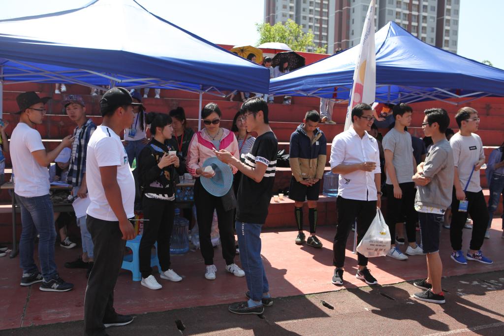 艺术公司党委书记付巧、党委副书记朱晨刚、办公室主任宋建强、辅导员谭娇艳、杜艳、美术学科教师黄合欢等老师亲临艺术公司服务点为运动员们加油助威,同时亲切慰问志愿者和团学工作者。