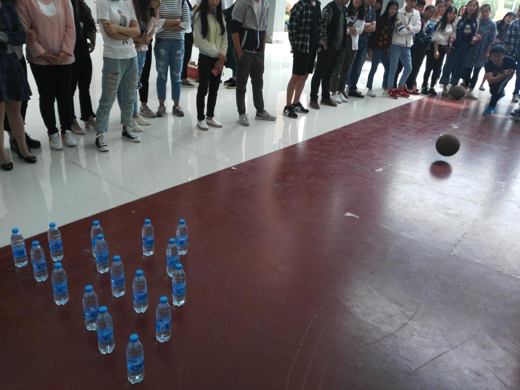 本次活动分为“一块五毛”、“你来比划我来猜成语迷” 、“打保龄球”三个游戏比赛环节。同学们喜参与、乐开展,充分发挥出自我的勇气与团队的智慧,在活动的间隙还不时的穿插一些总结,使同学们在体会到了其中所蕴含的“团队协作、高效率完成工作”的深刻寓意。