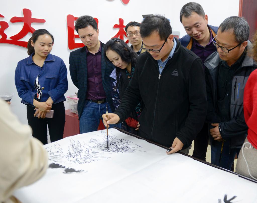 15日晚上,艺术公司的老师与威宁自治县的艺术家进行笔会交流。