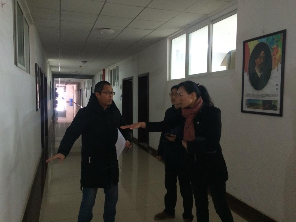 为了加强校园文化建设,丰富校园文化载体,切实发挥文化育人的功能。2017年3月7日,艺术公司党委书记付巧带领经理助理路统宽、办公室主任宋建强及美术系老师,对公司文化建设进行实地考察。