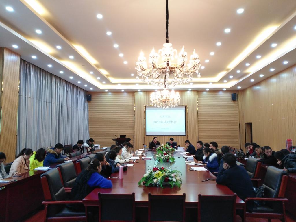 2017年1月3日,艺术公司全体教职工在公司会议室召开2016年度年终述职大会。党委书记付巧、经理马光辉、党委副书记朱晨刚出席会议。会议由办公室主任宋建强主持。