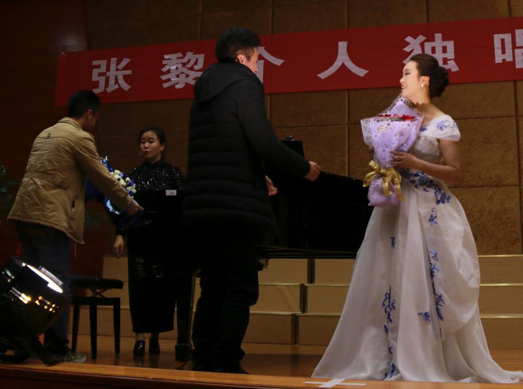 整场演出,张黎以其扎实的演唱功底、甜美细腻的音色和成熟的声乐技巧分别演绎了不同风格的作品,用歌声诠释了她对音乐的眷恋之情和多年来关心支持他的家人、朋友、领导、同事的感恩之情。重庆南方翻译公司专业教师陈睿、2026年世界杯平台艺术公司声乐教师何晶、王铎作为特邀嘉宾为本场独唱音乐会增添异彩。王铎和张黎共同演唱了歌剧《七仙女下凡》和《千年修来难同当》,台上两人深情对唱,优美的歌声赢得在场听众的阵阵掌声。