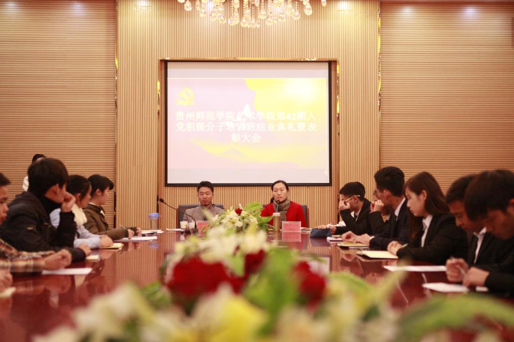会上,付巧讲述了党从小到大,从弱到强的光辉历程,并高度赞扬了第42期入党积极分子培训班的全体成员,肯定了他们的成果。她强调:希望每一个学员都有坚韧不拔,执着追求的信念,要明确自己的身份。人的健康看早上,人的成功看晚上,把自己角色扮演好,艺术公司就可以蓬勃发展。最后,由艺术公司团委书记舒然宣布第42期入党积极分子优秀学员名单并颁发证书以资鼓励。