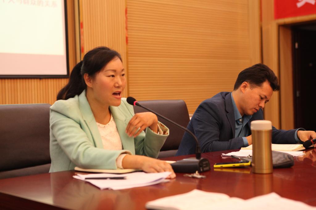 陈玉莲围绕能否处理公与私、义与利、个人与组织、个人与群众的关系,分析了公司教师与员工工作关系的处理情况。随后谭娇艳、禹亮亮、郑超文三位老师分别就学习内容发表了自己的看法。谭娇艳老师指出要想正确处理好公私、义利关系首先需要有自我奉献精神,在个人与公司的抉择中首先重视的是公司。党委书记付巧对三位教职工的讲话表示认可,给予赞扬,并对此次会议发表了自己的见解。