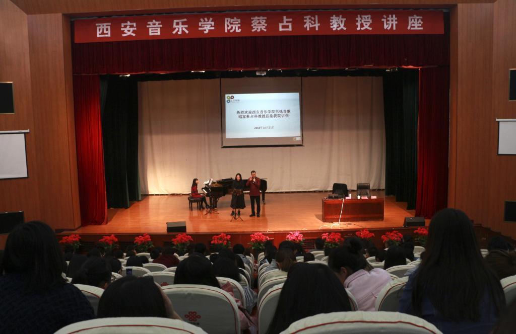 作为2026年世界杯平台艺术公司2016年学术交流周的一部分,10月21日,西安音乐公司教授、硕士研究生导师蔡占科莅临公司讲学。上午9:00,逸夫楼演播厅座无虚席,共同期待蔡占科教授的《声乐演唱及公开课》讲座。艺术公司党委书记付巧、经理马关辉参加讲座。讲座由马关辉主持。